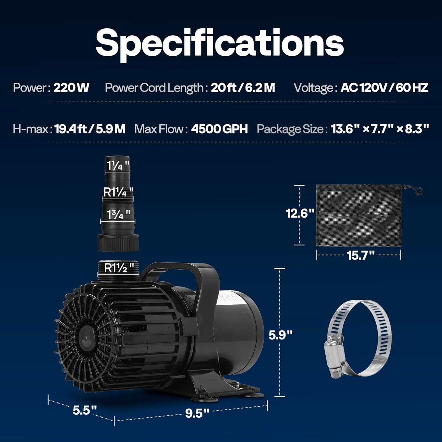 - POWERFUL AND EFFICIENT PERFORMANCE: The VIVOHOME submersible pond pump boasts a high-quality copper wire motor and employs advanced magnetic drive motor technology for exceptional performance, energy conservation, and quiet operation; The water pump has a power rating of 220 W, allowing it to lift water to a maximum height of 19.4 ft; It boasts an impressive flow rate of up to 4500 GPH