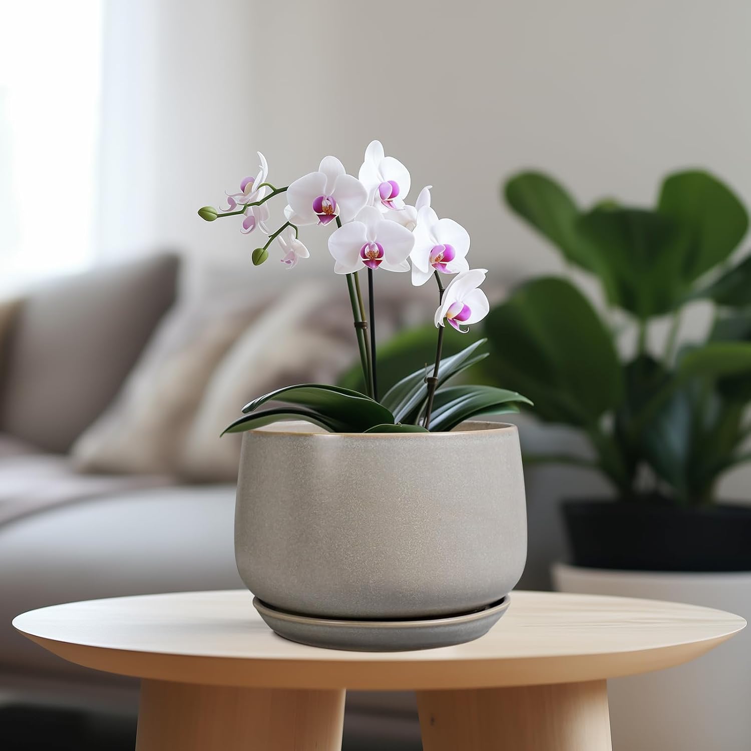 G EPGardening Ceramic Pots for Plants 7 Inch - Large Ceramic Planters for Indoor Plants Outdoor Modern Flower Pot with Drainage Holes and Saucer for Office Garden Patio Grey