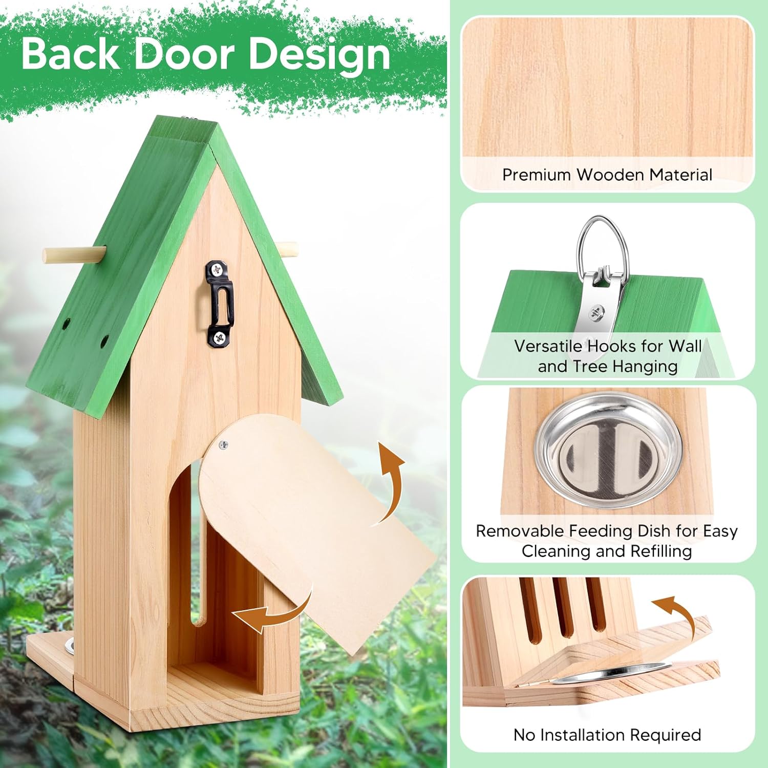 - 【2-in-1 Butterfly House & Feeder】 This butterfly house features a built-in butterfly feeder tray that can hold both clean water and nectar, providing a reliable food source while offering a cozy shelter. The removable feeder makes cleaning effortless, and the narrow entrance design protects butterflies from cold air and wind. Perfect for creating a thriving butterfly garden!