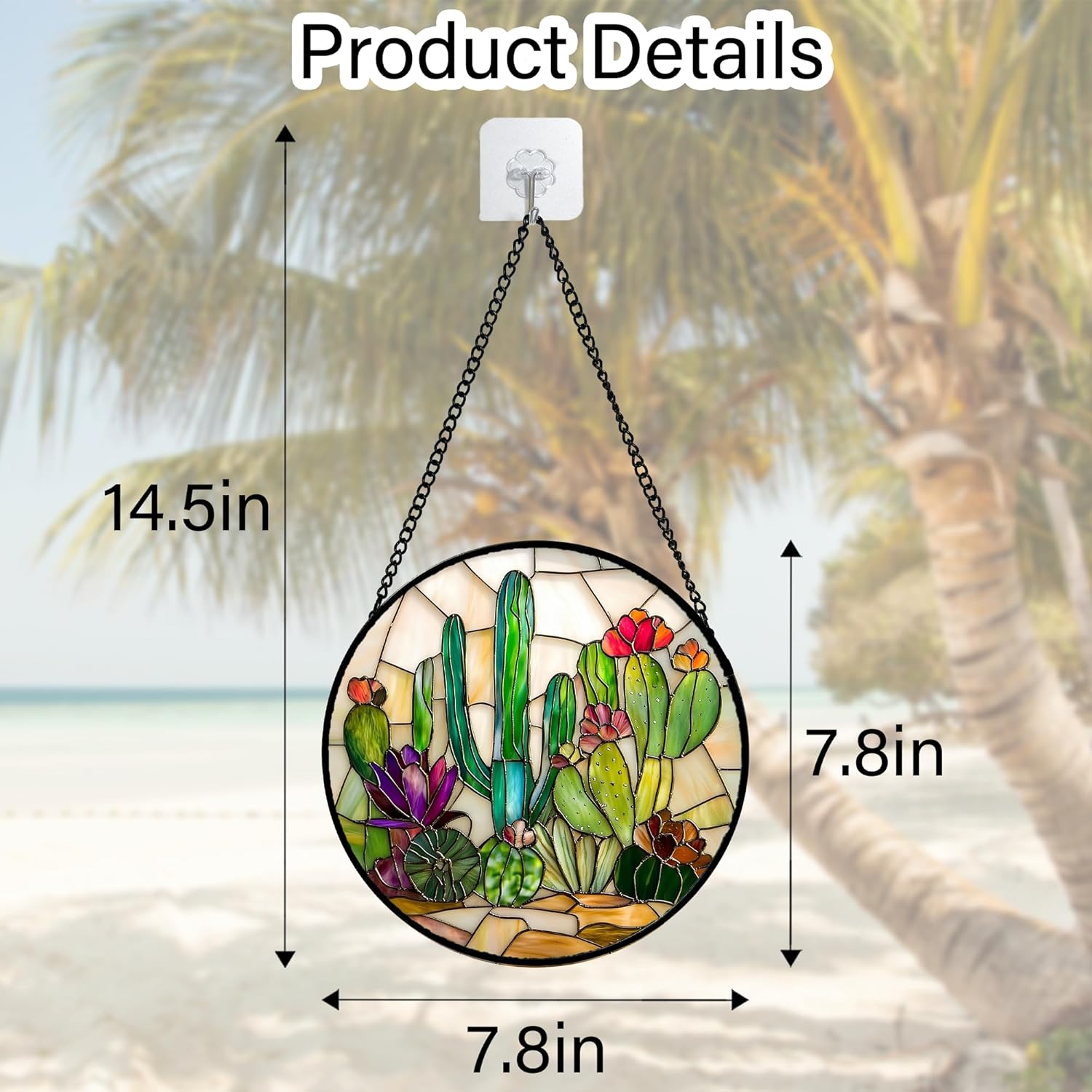 Stained Glass Window Hanging, White Green Cactus Suncatcher Diamond Glass Panel Hangings Sun Catchers Decor for Birthday for Women, Men, Wife, Aunt, and Mom 7.8 in