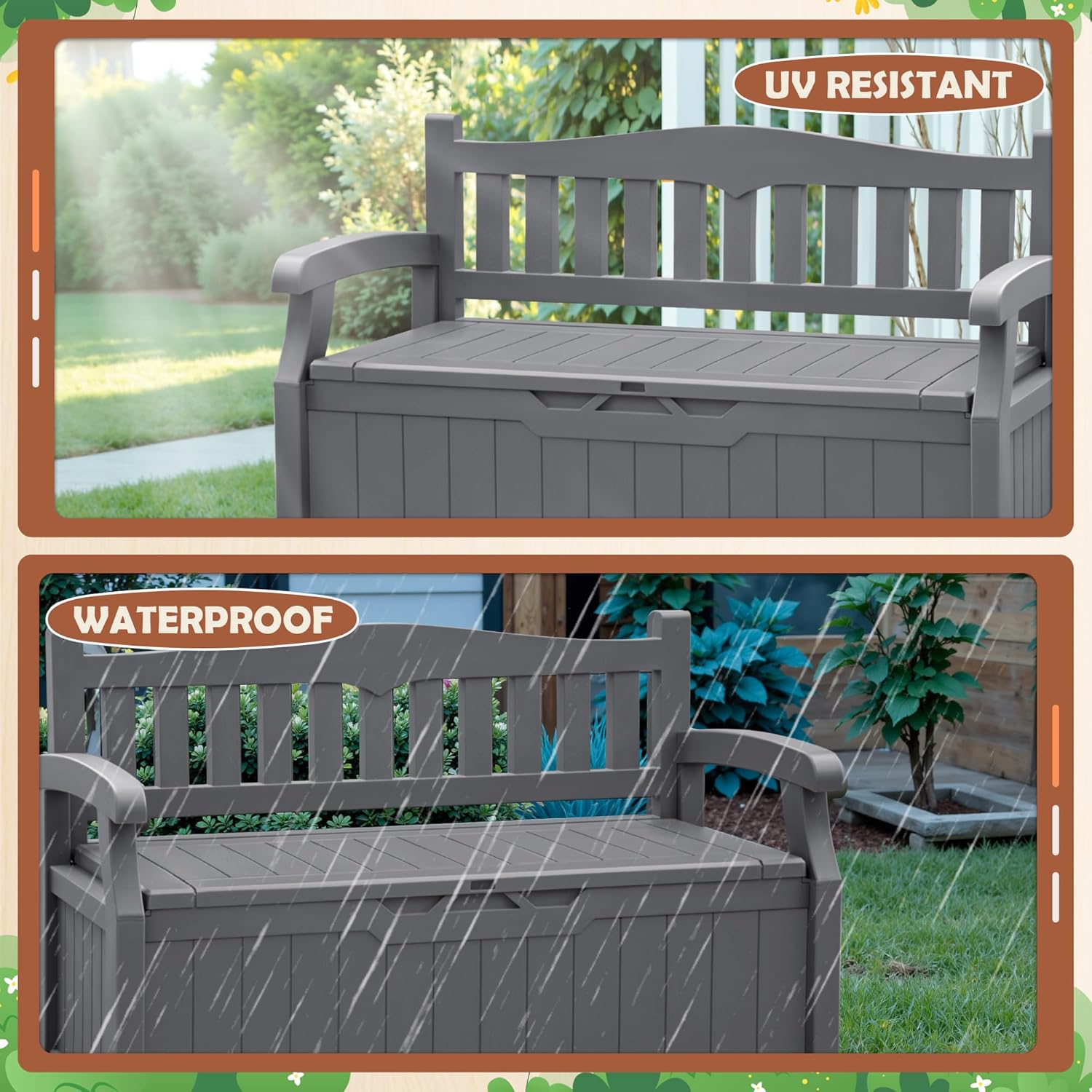 - Spacious Storage: The outdoor storage bench provides ample space to store various items such as blankets, cushions, tools, seasonal decorations. Say goodbye to clutter and keep your living environment neat