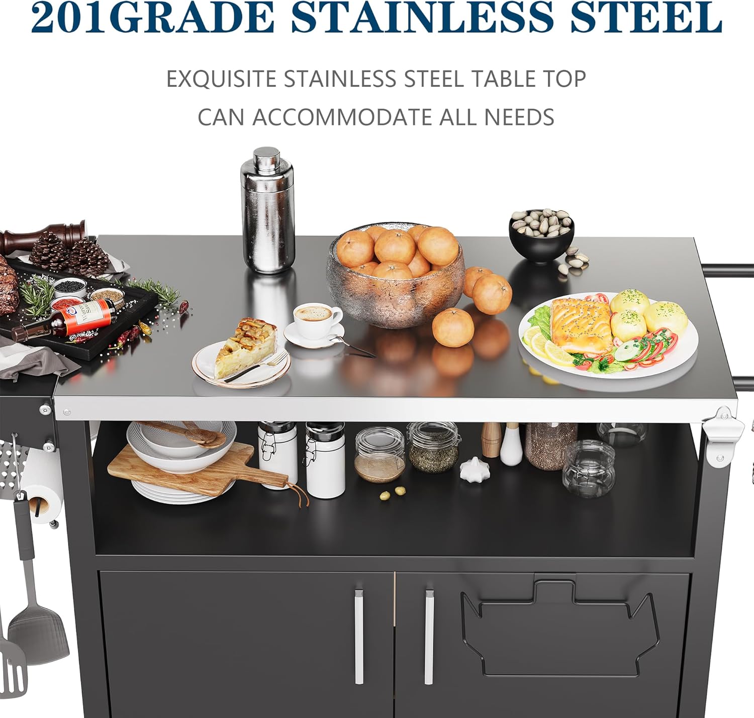- Modular Design-Professionally designed to give you a choice of setup configuration.Build the steel table exactly how you want it so it works within your planned space perfectly.During assembly you could place the wheels on the left or the right, remove the handle or kitchen roll holder.