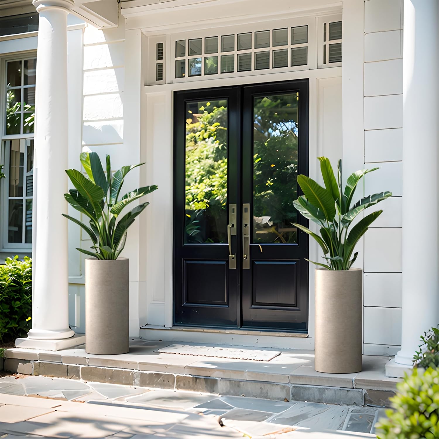 Kante 23.6 Inch Tall Cylindrical Planter, Large Round Plant Pots with Drainage Hole, Made with Concrete, Suitable for Indoor Outdoor Plants, Home Decor, Weathered Concrete