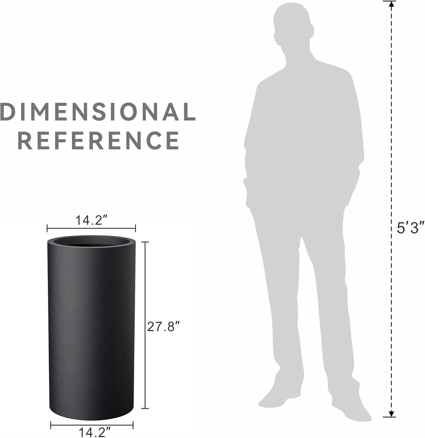 Kante 27.8 Inch Tall Cylindrical Planter, Large Round Plant Pots with Drainage Hole, Made with Concrete, Suitable for Indoor Outdoor Plants, Home Decor, Black