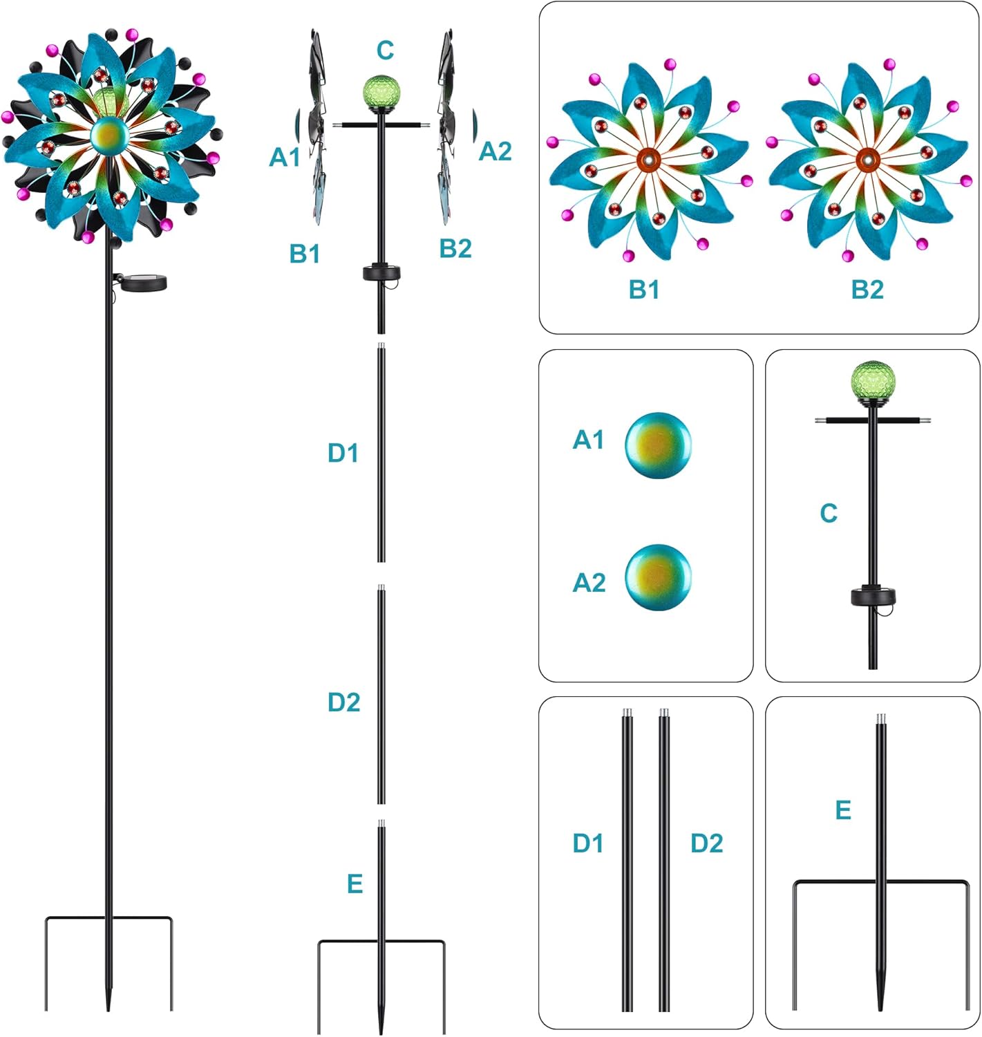 - HIGH QUALITY: Solar Wind spinner is made of thickened iron plates, thick metal rods and strong wooden piles to ensure stability, and the blades are coated with rust-proof coating and IP44 weather-resistant material to withstand outdoor weather and extend service life.