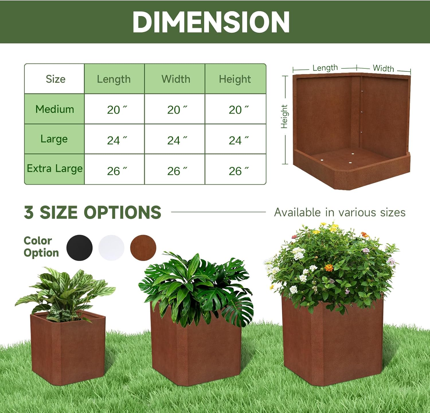 - 【Material And Size】: Corten steel planter box size 24"L x 24"W x 24"H, made of high quality corten steel, strong and durable, anti-deformation and corrosion resistance, 30+ long service life.