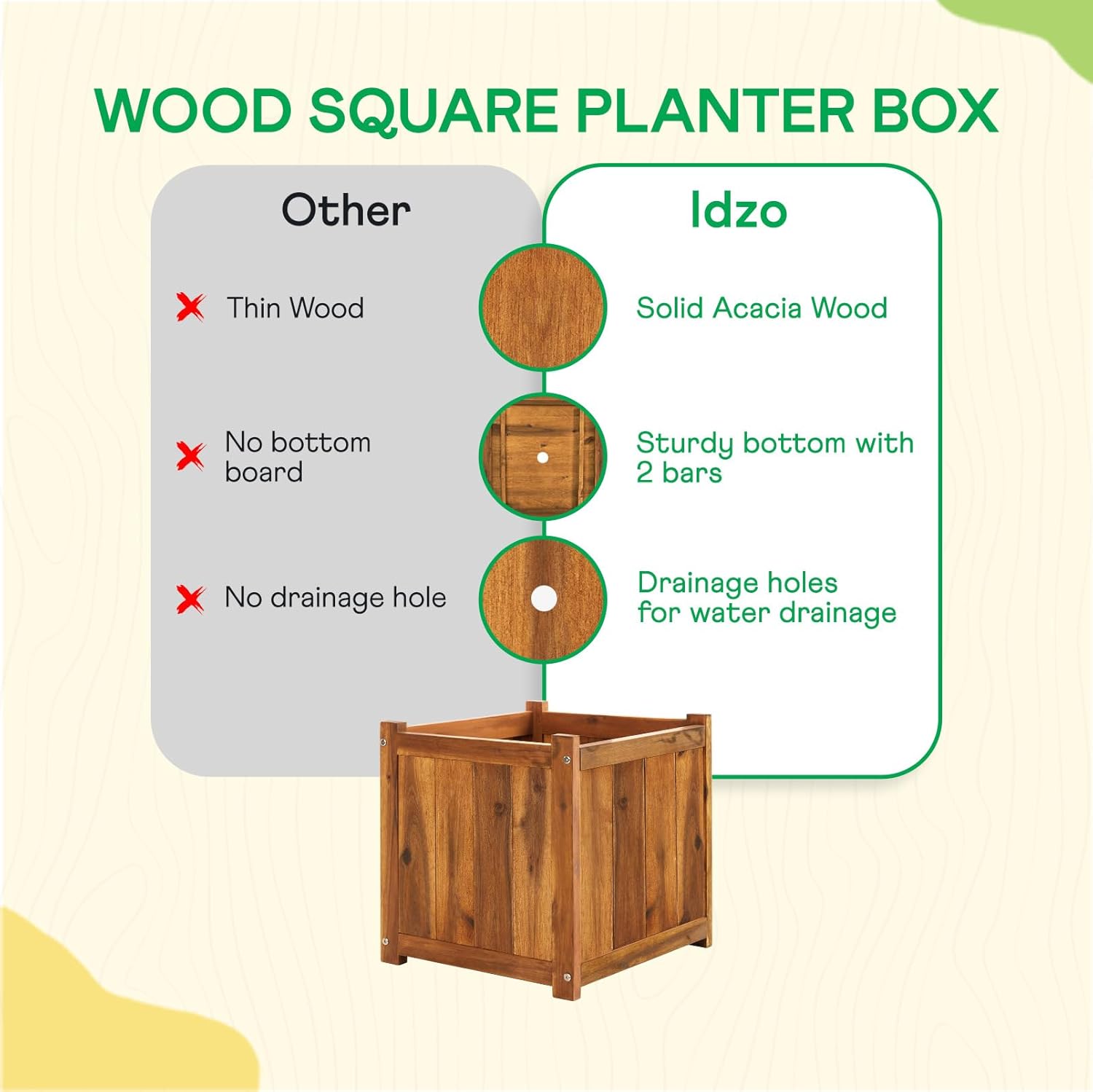 IDZO Acacia Wood Flower Planter Box for Outdoor Plants, 1pc Wooden Raised Garden Bed with Handles, Drainage Holes, Ideal for Garden and Home Décor, Light Cherry
