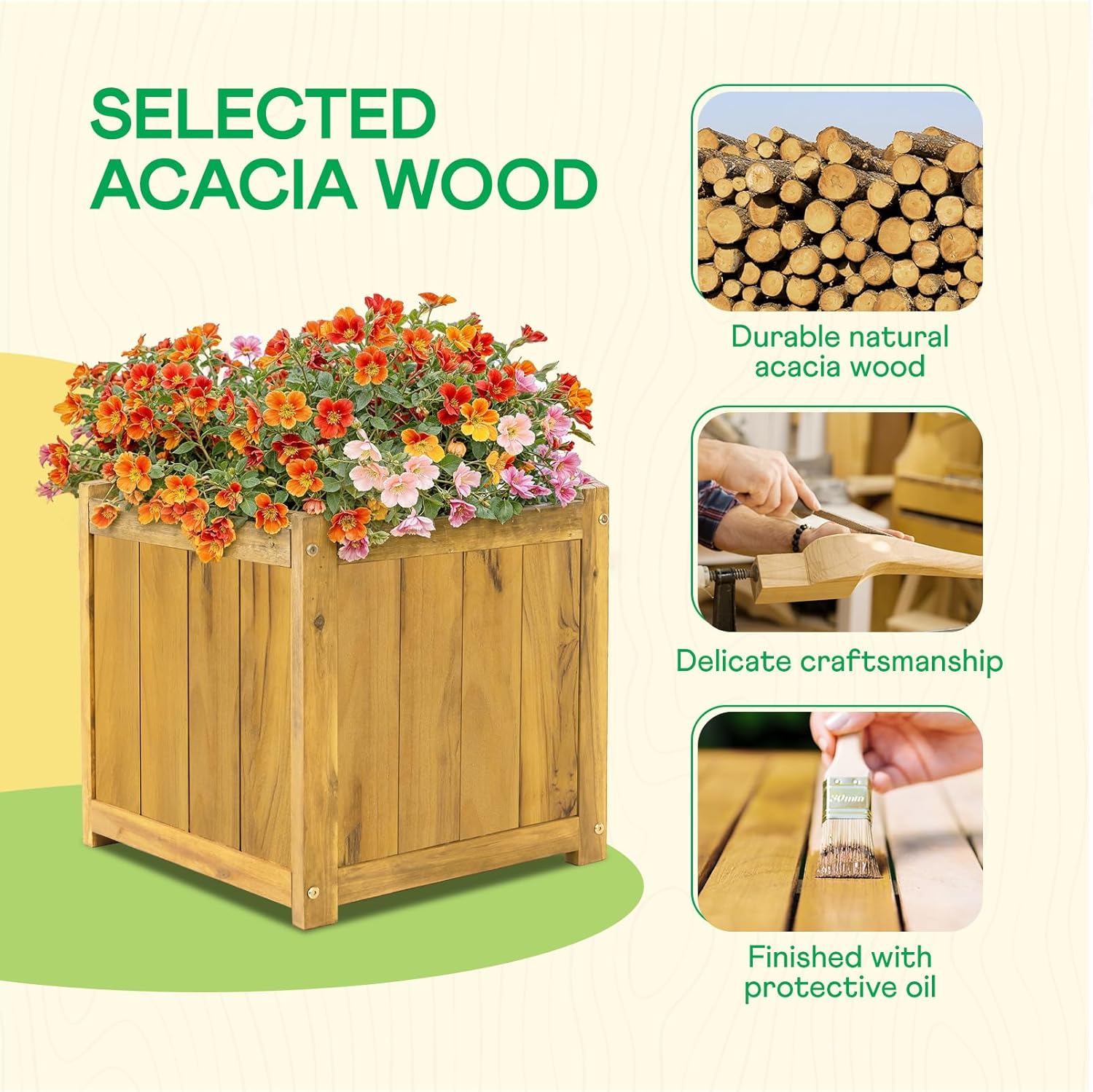 - HIGH-QUALITY ACACIA WOOD CONSTRUCTION: This herb garden planter outdoor is made from durable Acacia wood; Its natural wood grain adds a touch of nature to your living space, ideal for growing plants