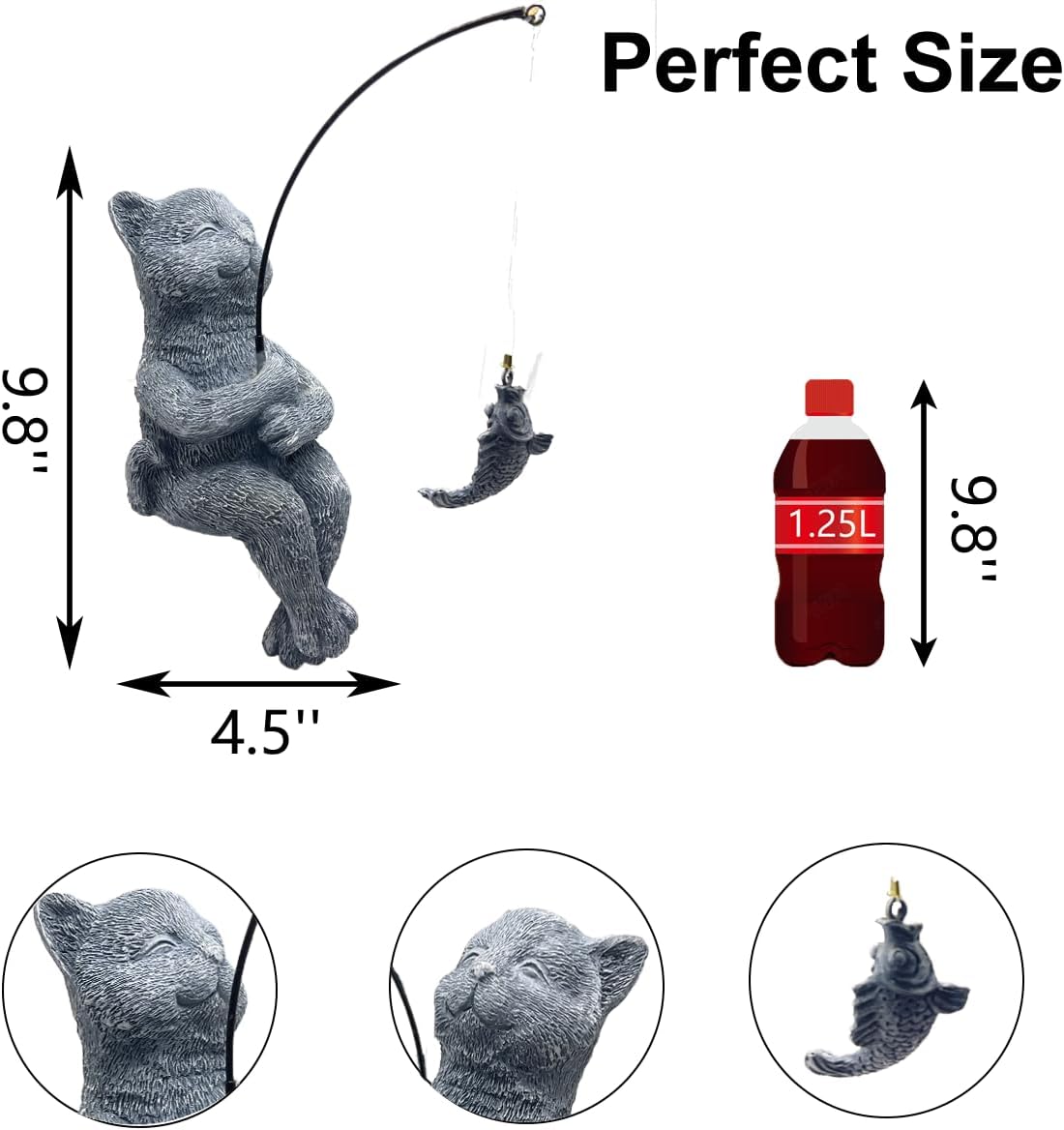 - Compact and Eye-Catching Design: Measuring 9.8"x4.5", this fishing sculpture is the perfect size for any garden decor or small koi pond. Its unique design will stand out, creating a whimsical focal point in your outdoor pond, fence, or table settings.