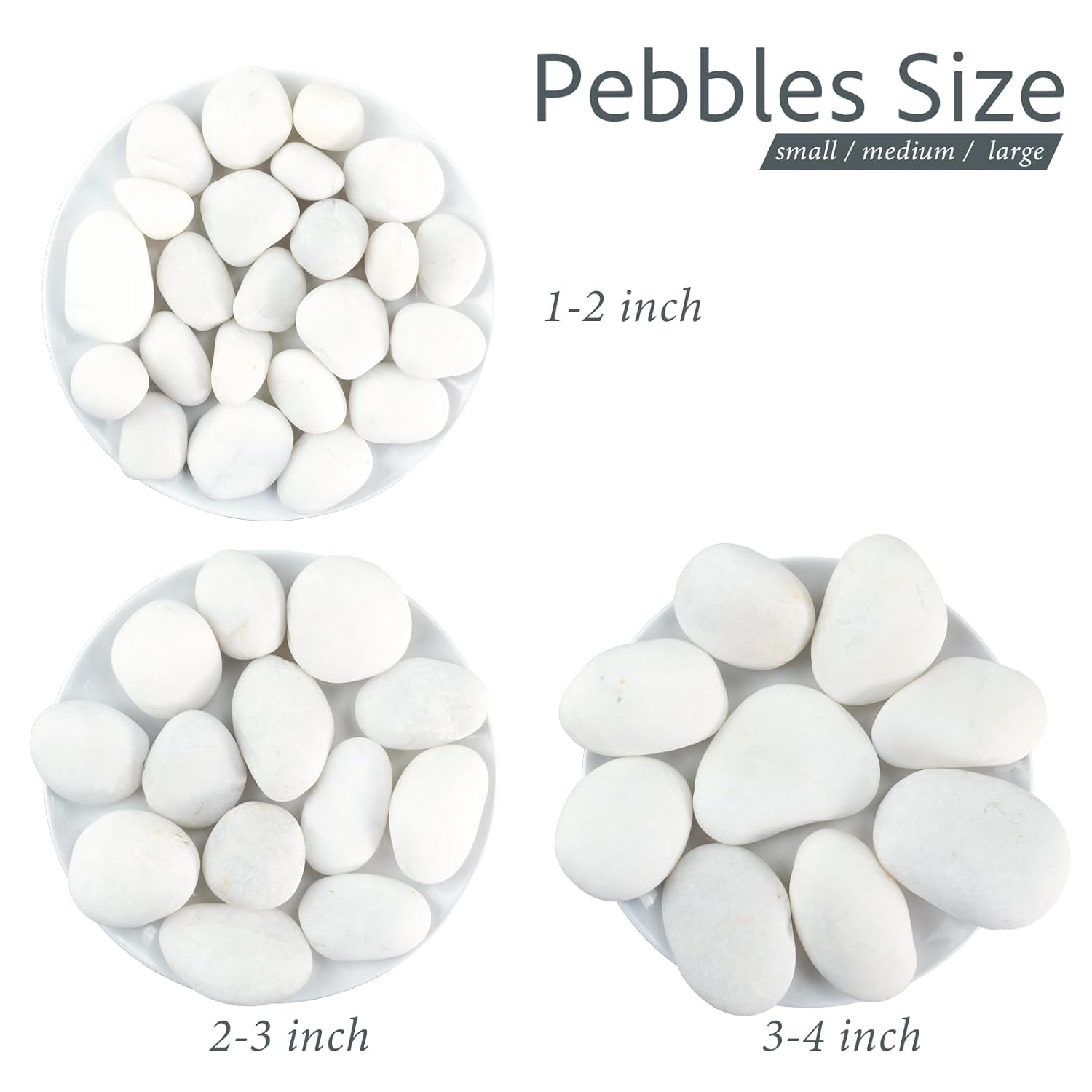 - Multiple Colors & Sizes: Available in three stunning color options—black, white, and multicolor—and three sizes (1-2 inch, 2-3 inch, and 3-4 inch), these rocks cater to a variety of creative projects, from garden borders to aquarium setups