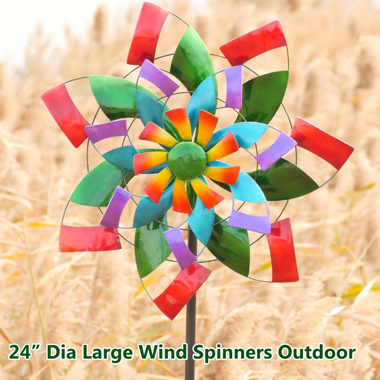 24" Dia Large Wind Spinner, Colorful Metal Wind Sculptures 83.5" Height Heavy Kinetic Windmill with 5 Prong Stake for Outdoor Patio, Yard and Garden, Ideal Gift for Family Friend
