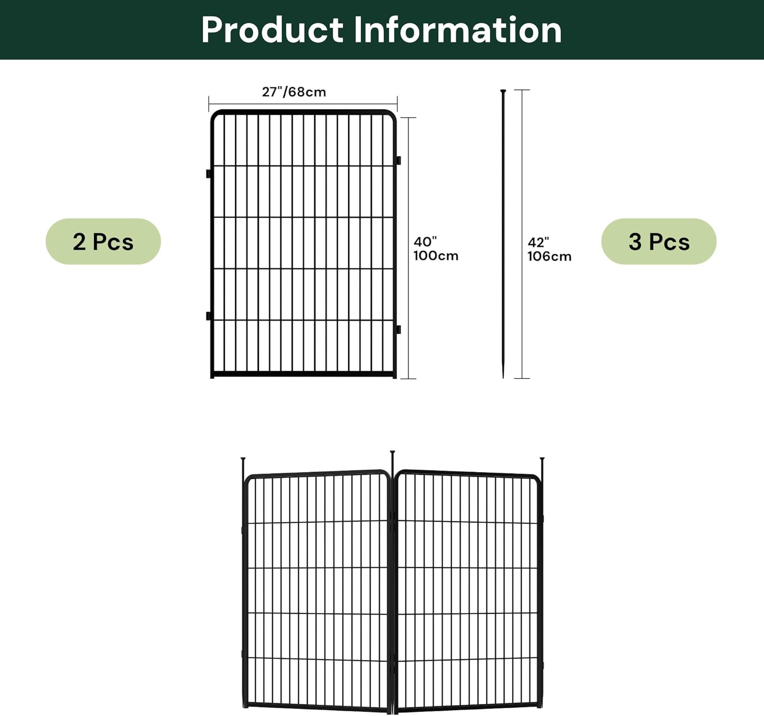 - Easy to Assemble: Say goodbye to complicated assembly! Garden fence with gate could be assembled in just a few minutes without tools, you only need to put the two fence panels facing out and align the rings, and finally insert the pole into the ring to fix it. The pole easily inserts into the soil, providing great stability