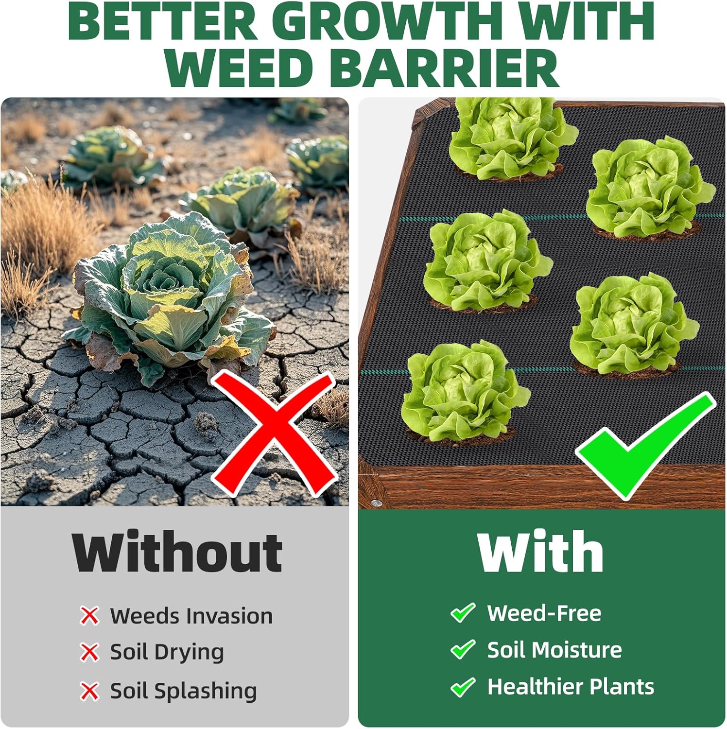 - 【Includes an Additional Weed Barrier Fabric】 Compared to traditional planting beds, G GOOD GAIN raised bed equipped with a perfectly fits 4 feet × 2 feet weed barrier fabric, features high-density and permeable, it can effectively stop weed growth and protects soil health, make your plants grow better, while keeps your garden box neat and beautiful. It is time to experience weed-free, hassle-free gardening!