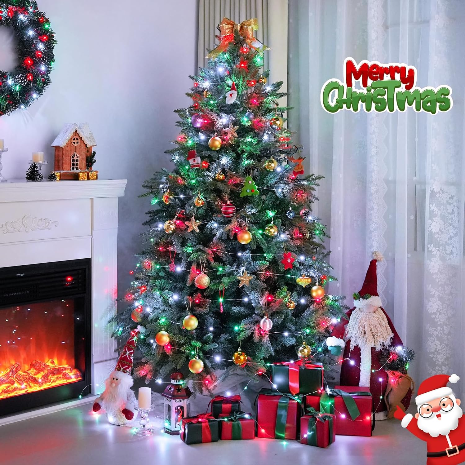 - 【8 Impressive Lighting Modes Solar Fairy Lights】our red green white Christmas lights with 8 different modes (steady/flash/smooth/Steady-on, etc), can create vibrant Christmas atmospheres. Lighten your Lights and brighten up your family and friendship. The solar Christmas fairy lights were just icing on the cake.