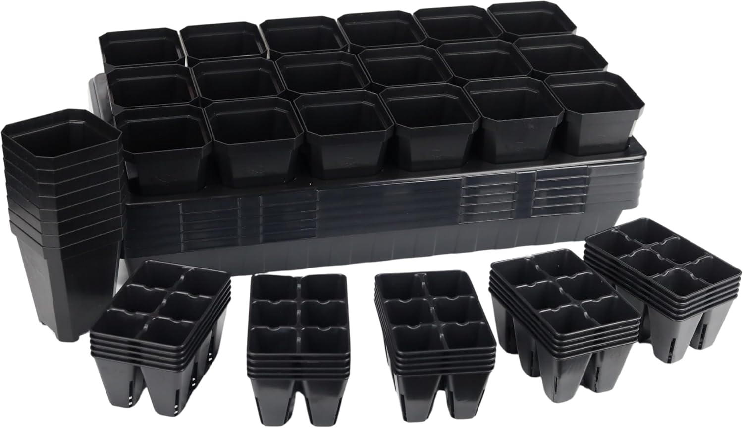- Complete seed starting kit: 60 professional cell plug inserts, 5 heavy-duty trays, 90 transplant pots - everything needed to grow your entire garden from seed to transplant
