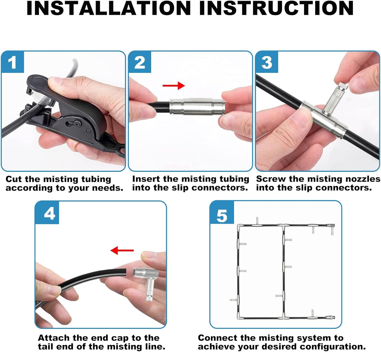 - 【Complete Misting Solution】 This kit includes 10 precision misting nozzles and 10 durable slip connectors, giving you all the essential components for a fully functional outdoor cooling setup or easy replacements.