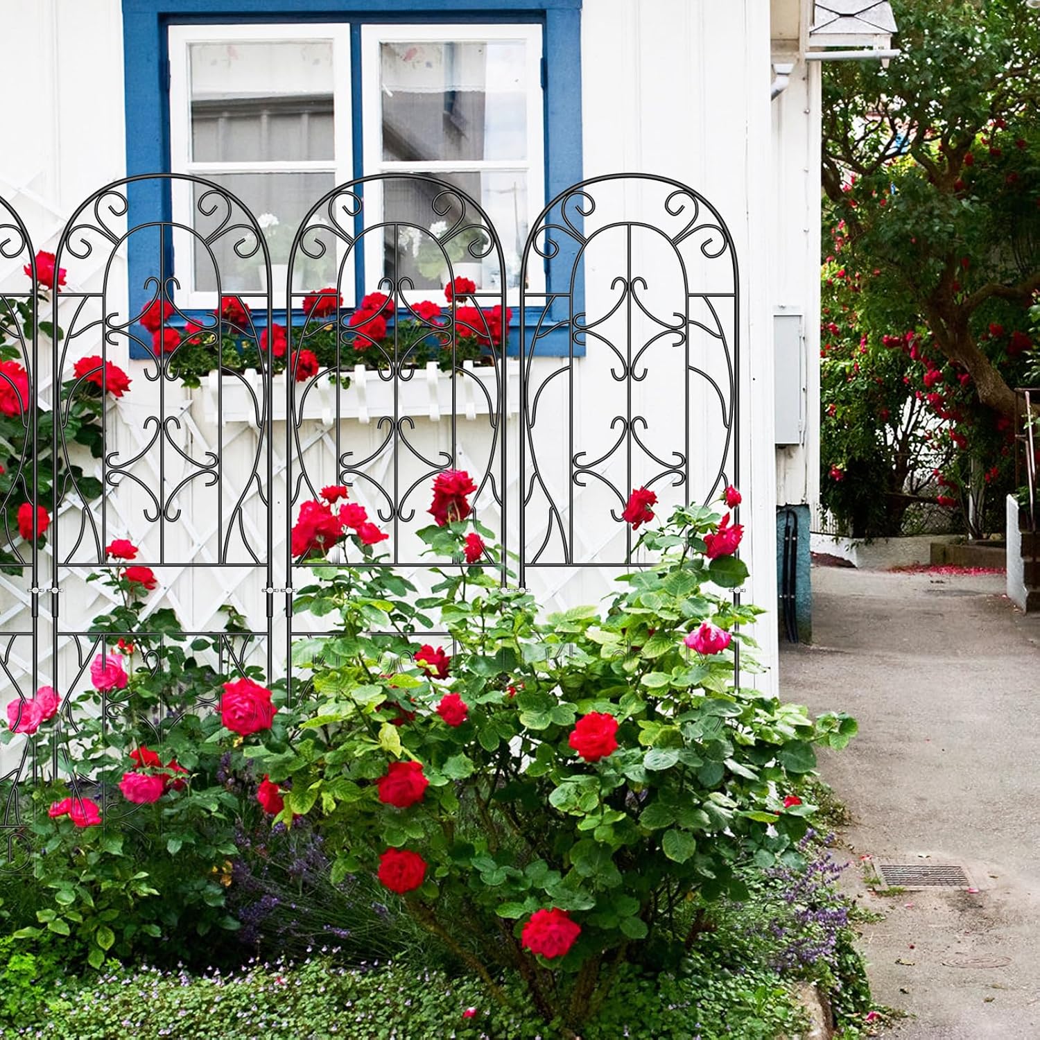 - STYLISH & RUSTPROOF: The iron outdoor decorative trellis is made of iron with rust proof powder coated finish, which makes it could be used for both outdoor and indoor decoration to be rustproof clematis trellis, climbing plant trellis,climbing rose trellis,cucumber garden trellis,flower trellis,grapes trellis,iron trellis for climbing plants,metal garden trellis,plant trellis for pots,planters with trellis,planting pot with trellis,potted plant trellis,rose arbor trellis.
