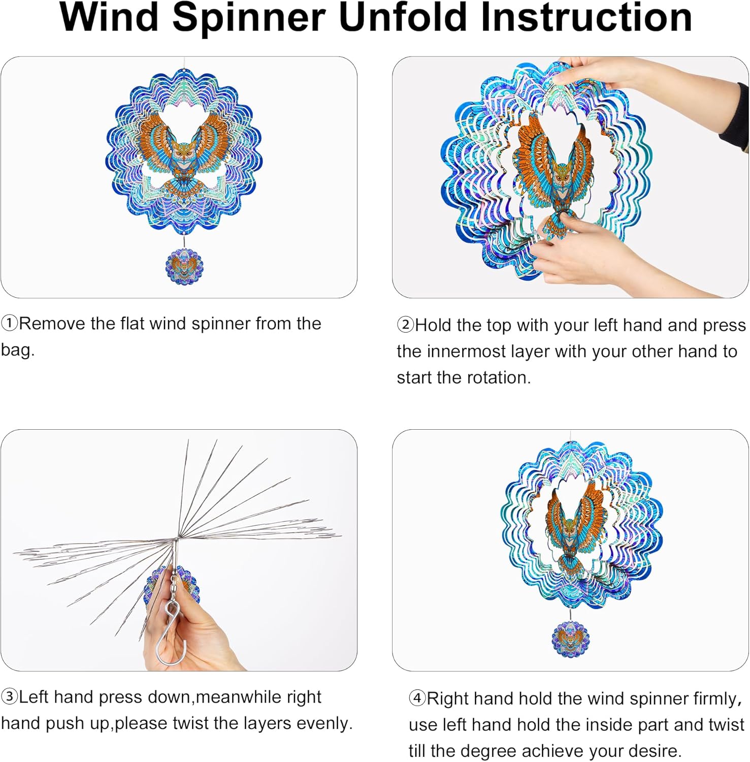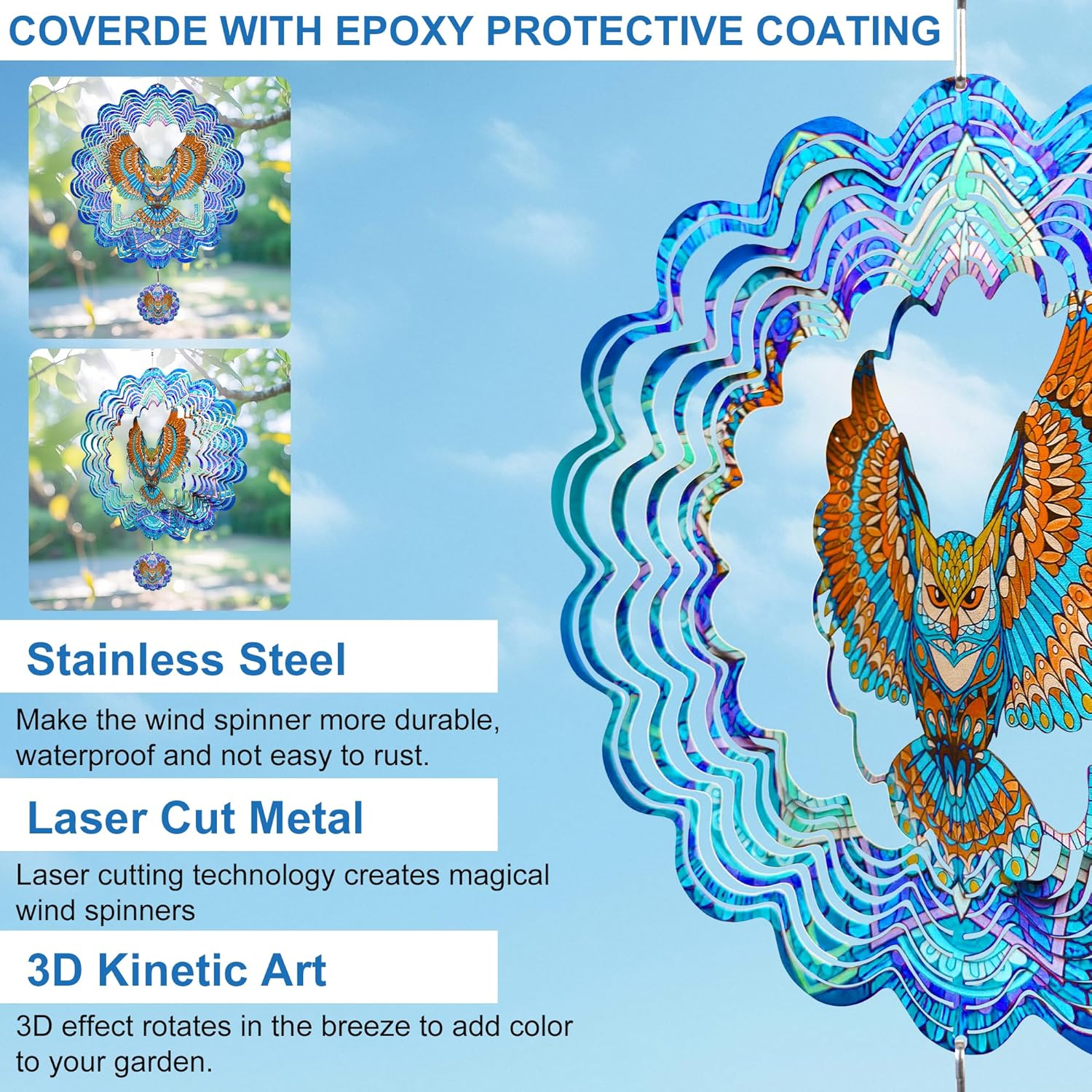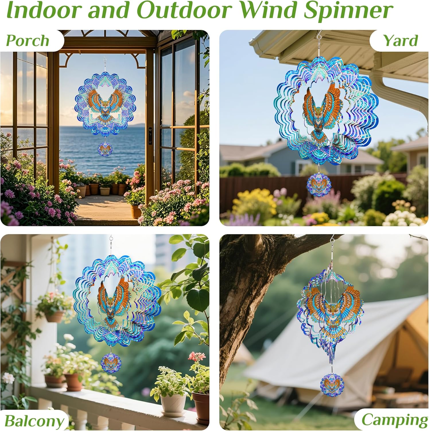 - KINETIC 3D WIND SPINNER: Watch the owl come to life! The metal bird wind spinner hanging creates a captivating 3D dynamic effect, adding vivid charm to your garden, patio, balcony or indoor space