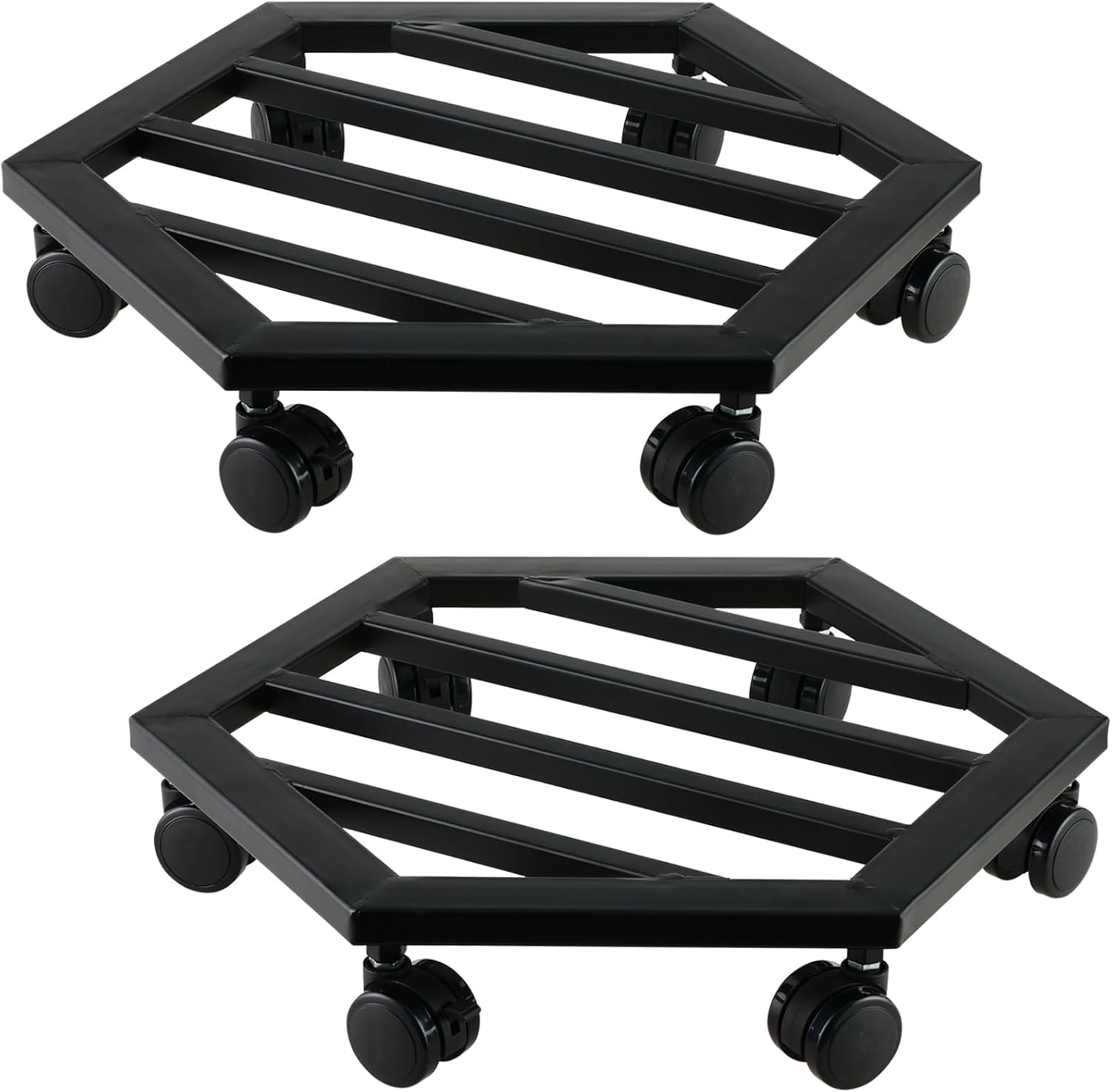2 Packs 13 inches Large Metal Plant Caddy with Wheels Rolling Plant Stands Heavy-duty Wrought Iron Plant Roller Movers Indoor Outdoor Wheeled Plant Dolly with Casters Tray Coaster, Hexagon black