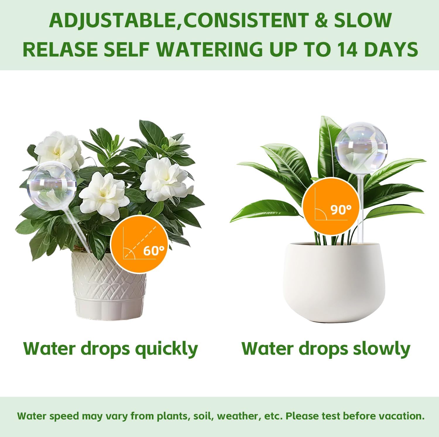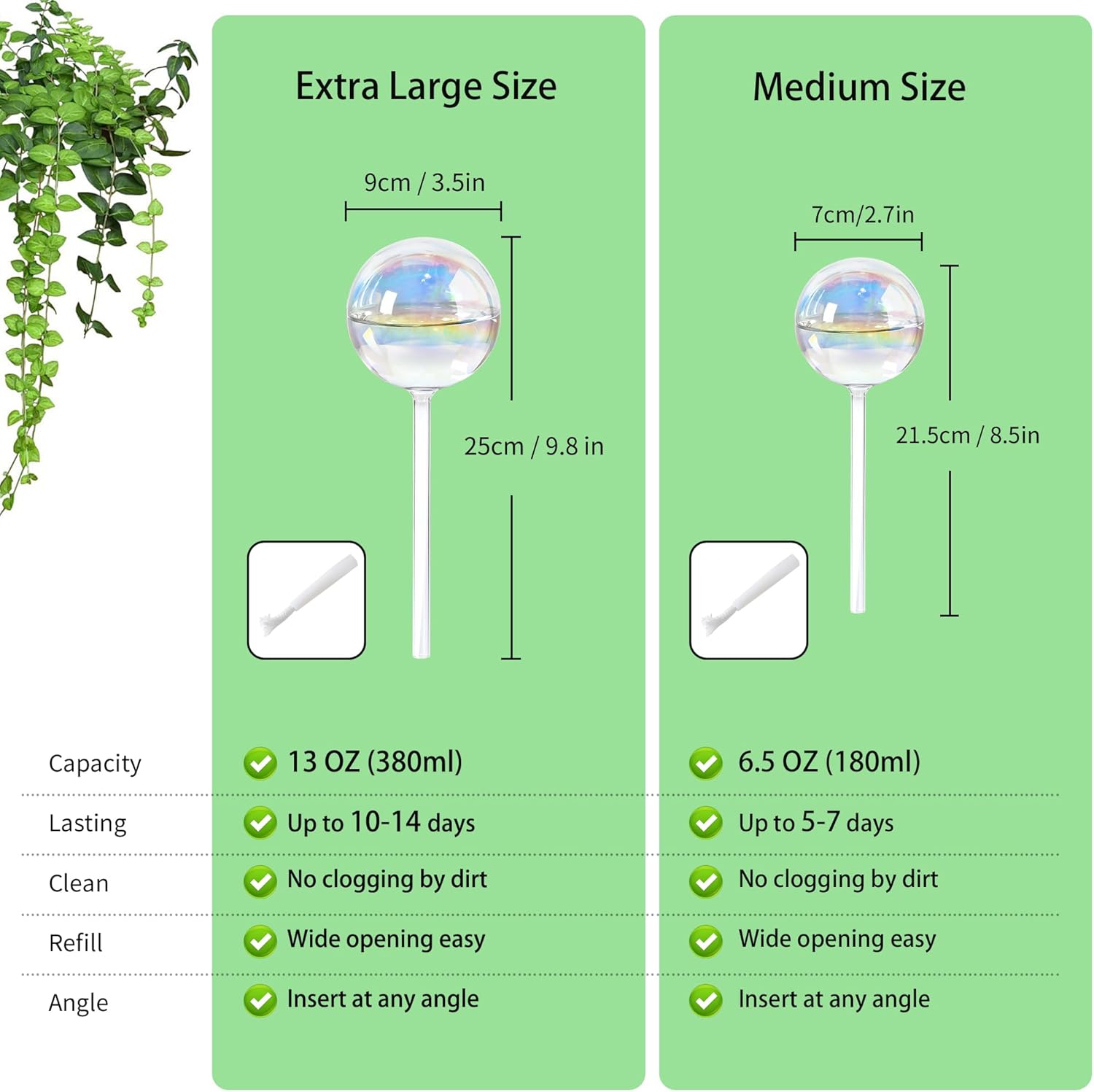 - ✨ Elegant & Decorative Iridescent glass watering globes add charm to your plants, resembling floating soap bubbles that refract sunlight beautifully. Perfect for plant lovers seeking aesthetic and functional accessories.
