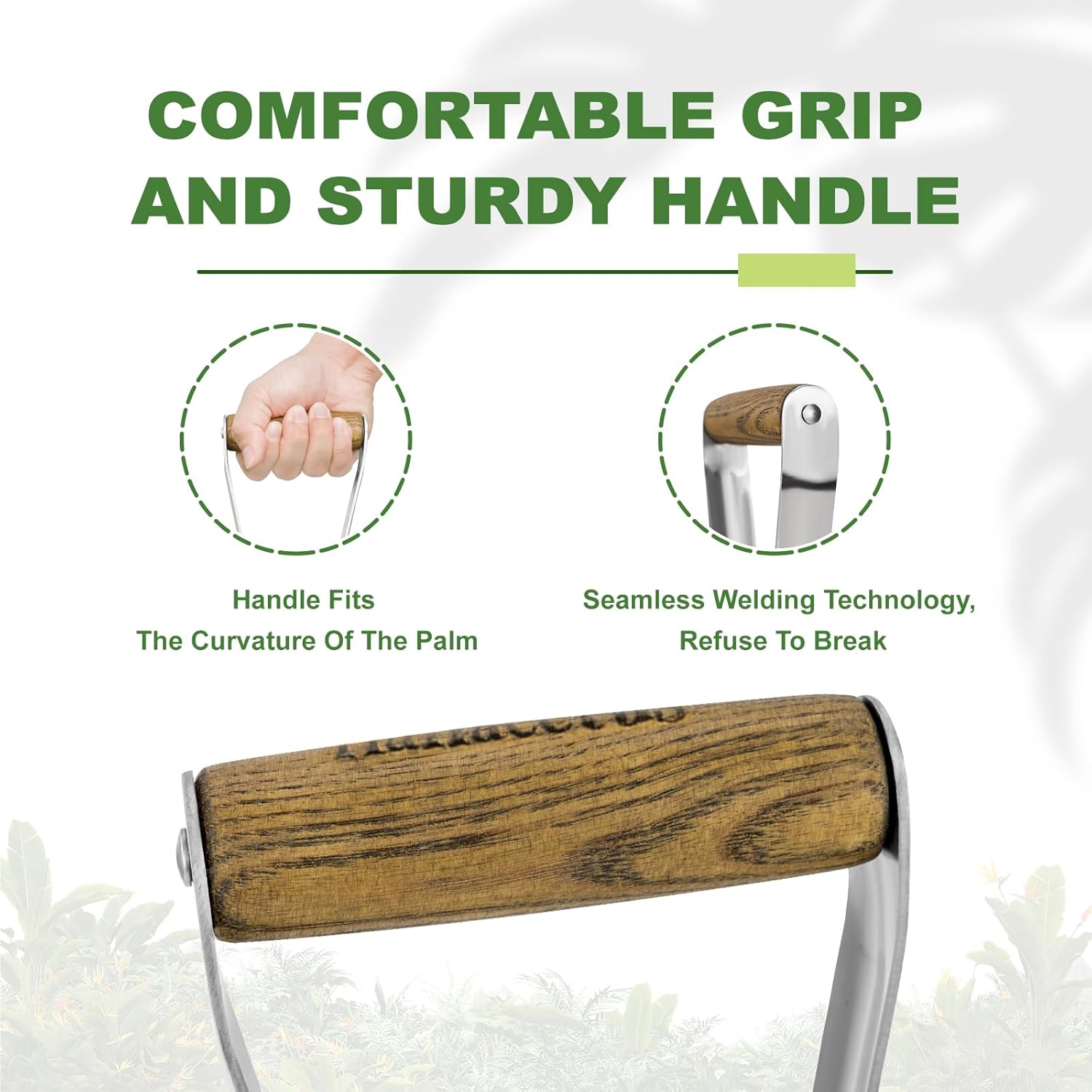 • 【Comfortable Grip Wooden Handle】The handle of garden tool bulb planter is designed in an ergonomic streamline, which fits the natural shape of the hand when holding and using, which helps to provide comfort and good posture when kneeling to plant small bulbs, making the gardening process more comfortable and labor-saving.