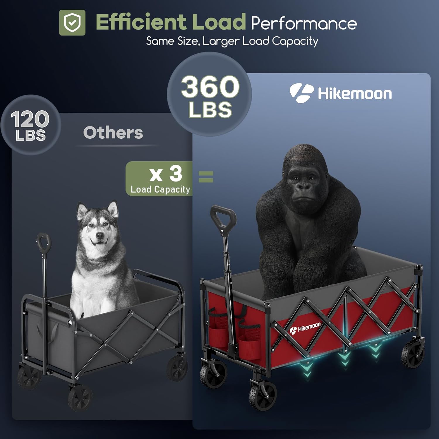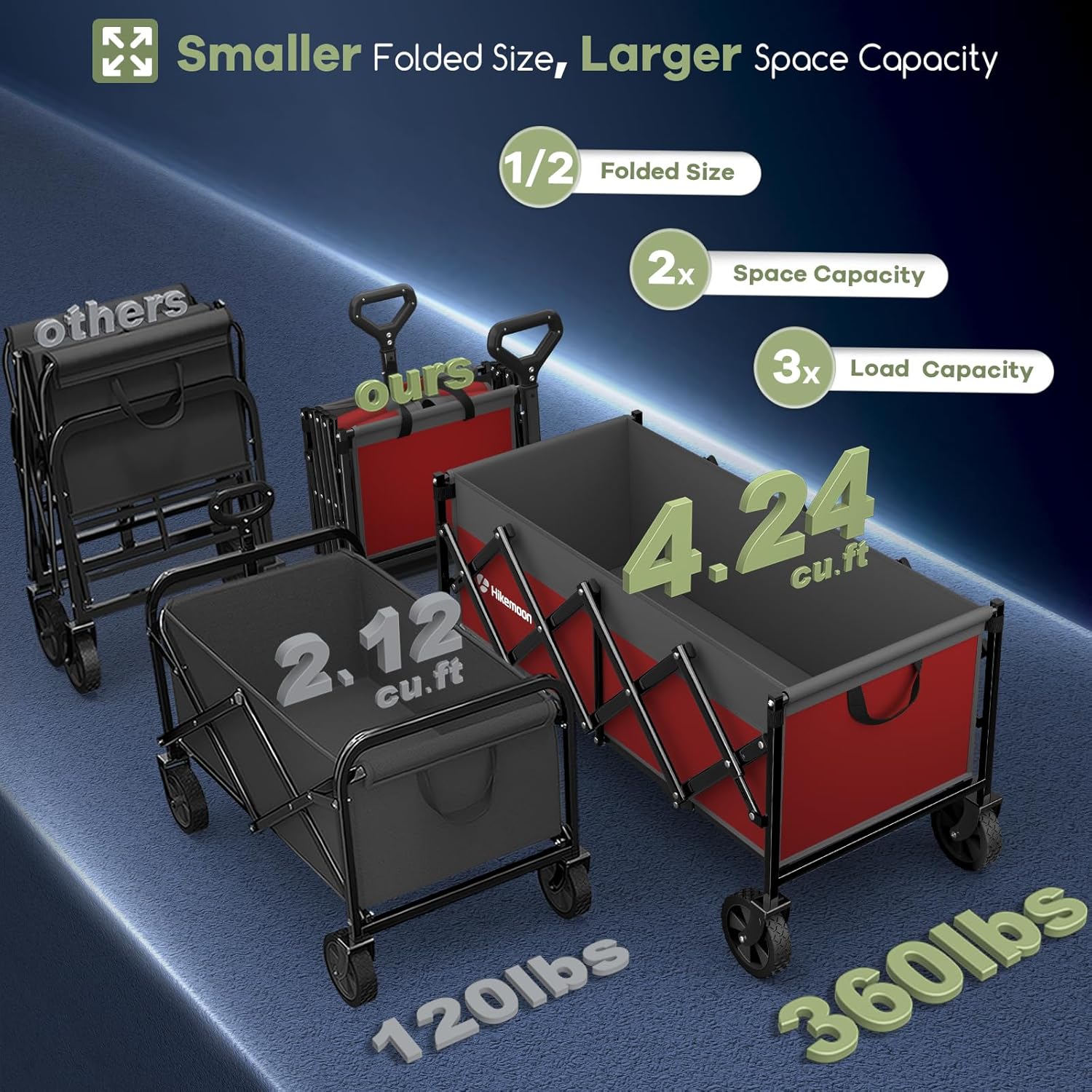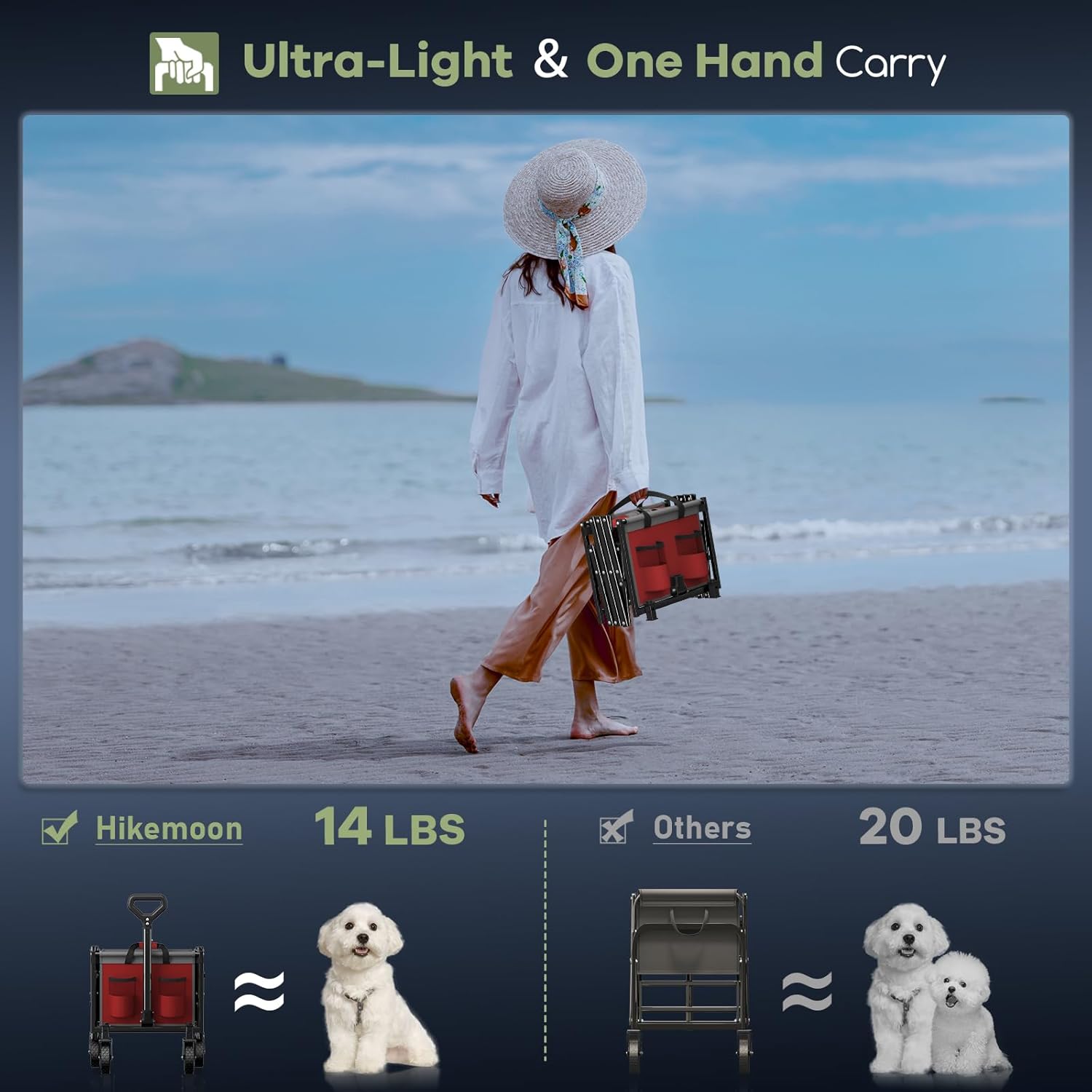 - 【𝟑𝟒" 𝐄𝐱𝐭𝐫𝐚 𝐋𝐨𝐧𝐠 𝐋𝐢𝐠𝐡𝐭𝐰𝐞𝐢𝐠𝐡𝐭 𝐖𝐚𝐠𝐨𝐧 𝐰𝐢𝐭𝐡 𝟏𝟐𝟎𝐋 𝐂𝐚𝐩𝐚𝐜𝐢𝐭𝐲】: Featuring a patented design, this wagon is 50% longer than standard wagons. Its spacious interior easily accommodates long items like folded tents. Despite its large capacity, it weighs only 14 lbs, making it 40% lighter than other wagons! You can carry this portable wagon effortlessly.