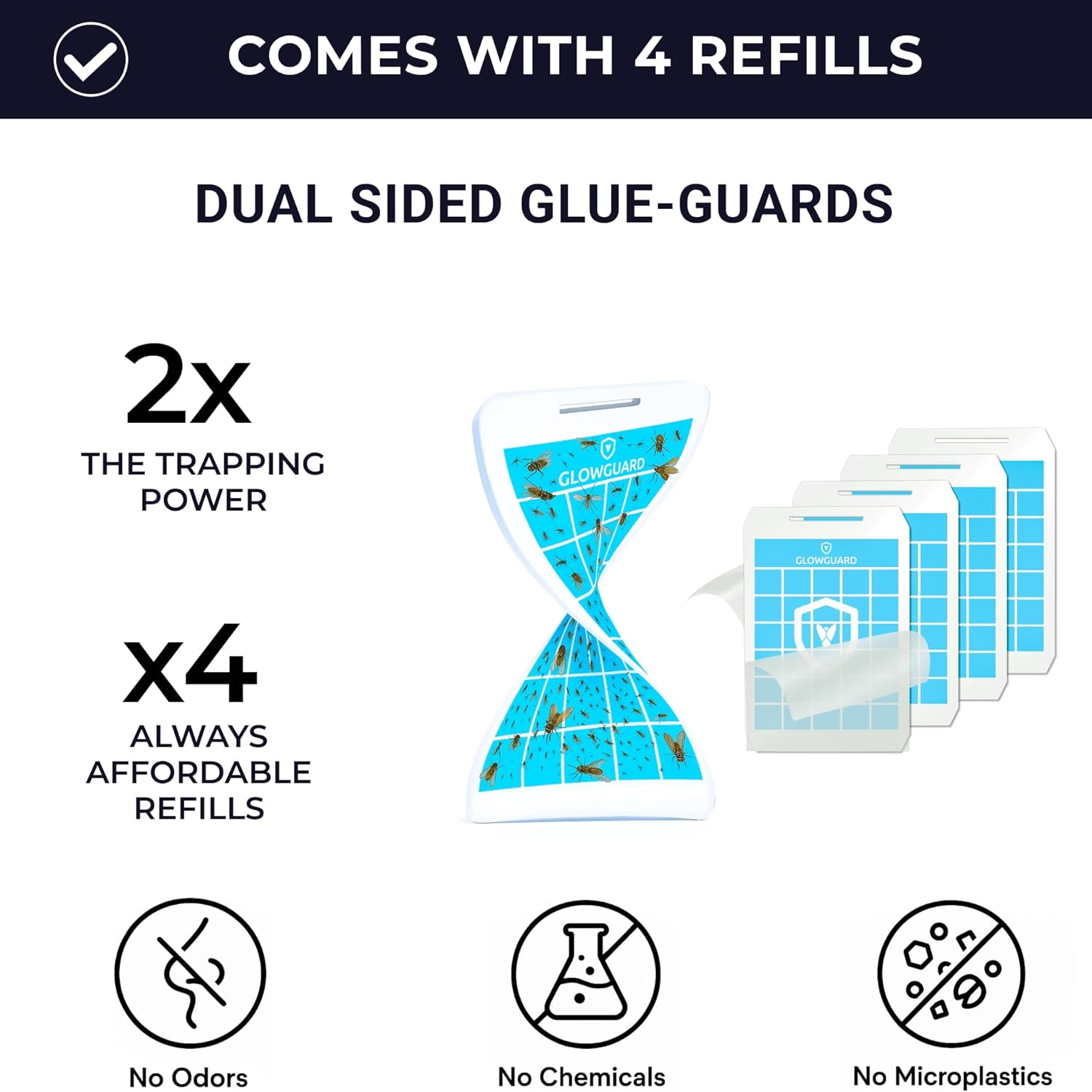GlowGuard Cordless Flying Insect Trap Catches Fruit Flies, Indoor Gnat Killer, Magnet for Moths & Mosquitos in Dark, 1 Rechargeable Trap + 4 Dual-Sided Sticky Pad Refills, 30Hr 5000mAh Battery (Black)