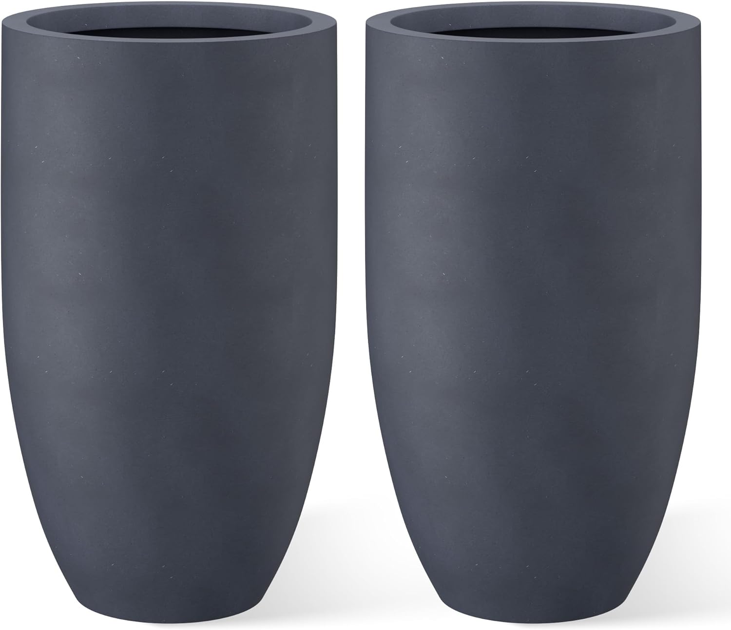 Kante 24 Inch Tall Round Concrete Planter, 2 Pack Large Indoor Outdoor Plant Pots with Drainage Hole and Rubber Plug, Modern Decorative Garden Pots for Home Patio Porch, Charcoal