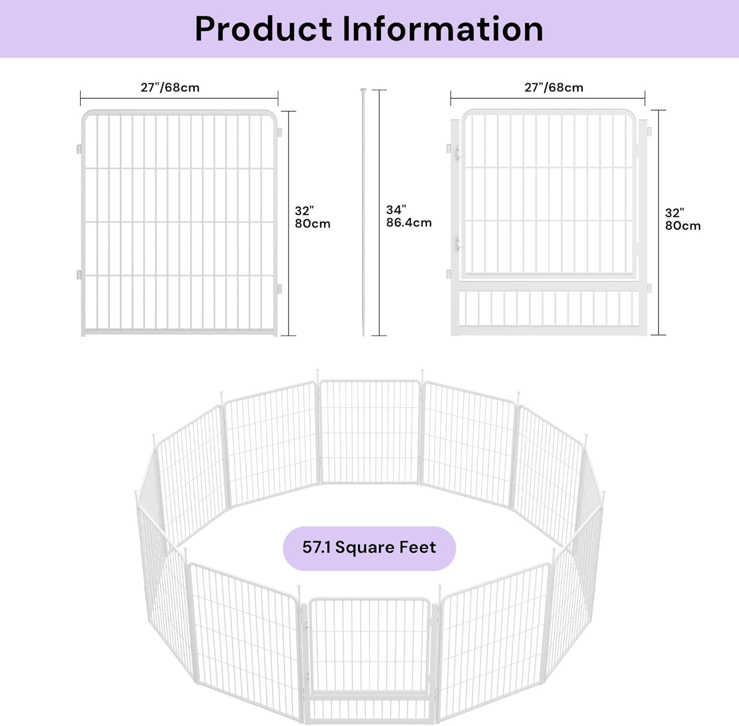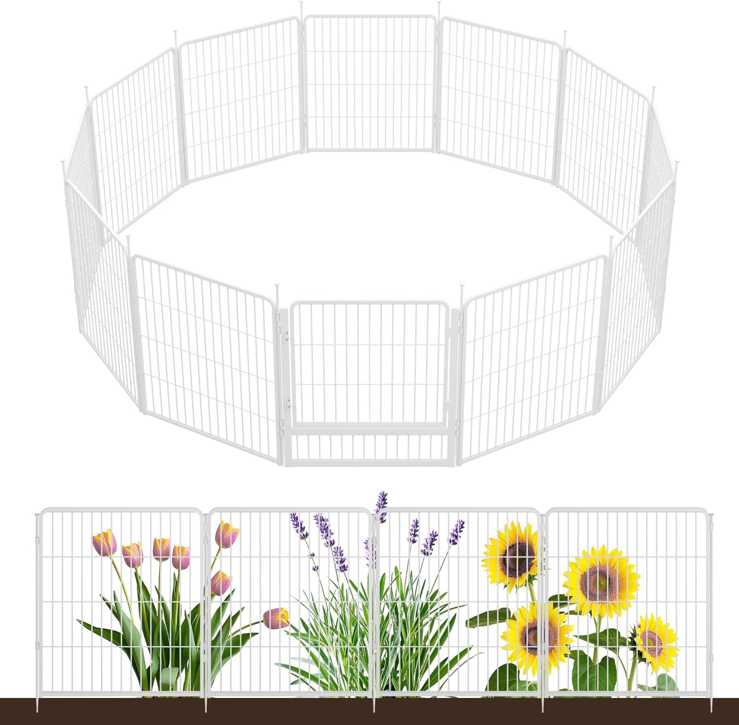 Decorative Garden Fence with Gate 32 in(H) x 26.8 ft(L) 12 Panels, Heavy Duty Metal Animal Barrier Fence for Yard, Flower Bed Fencing, Garden Border Fence, Easy Set Up, White