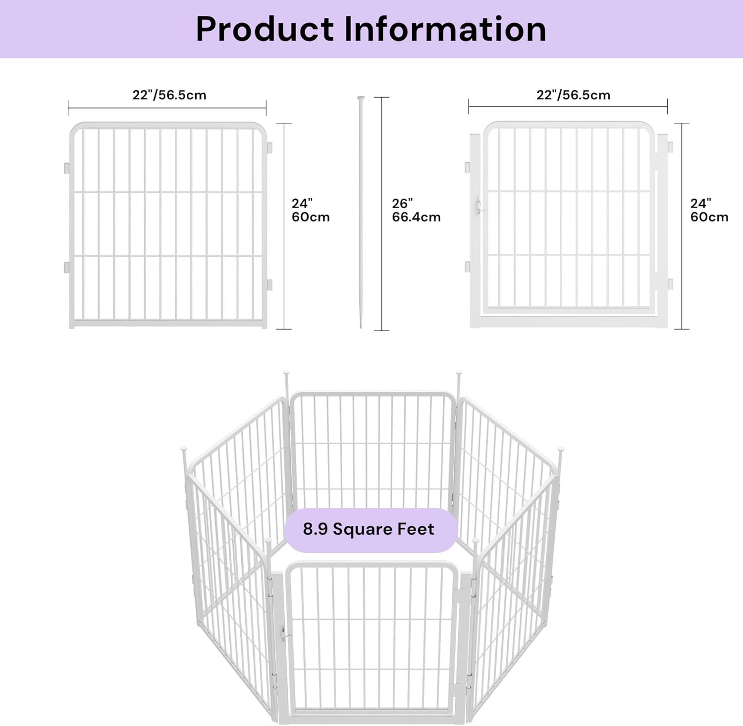 Garden Fence with Gate 24 in(H) x 11.1 ft(L) 6 Panels, Heavy Duty Metal Animal Barrier for Dog and Rabbit, Outdoor Fencing, Easy Set Up, White