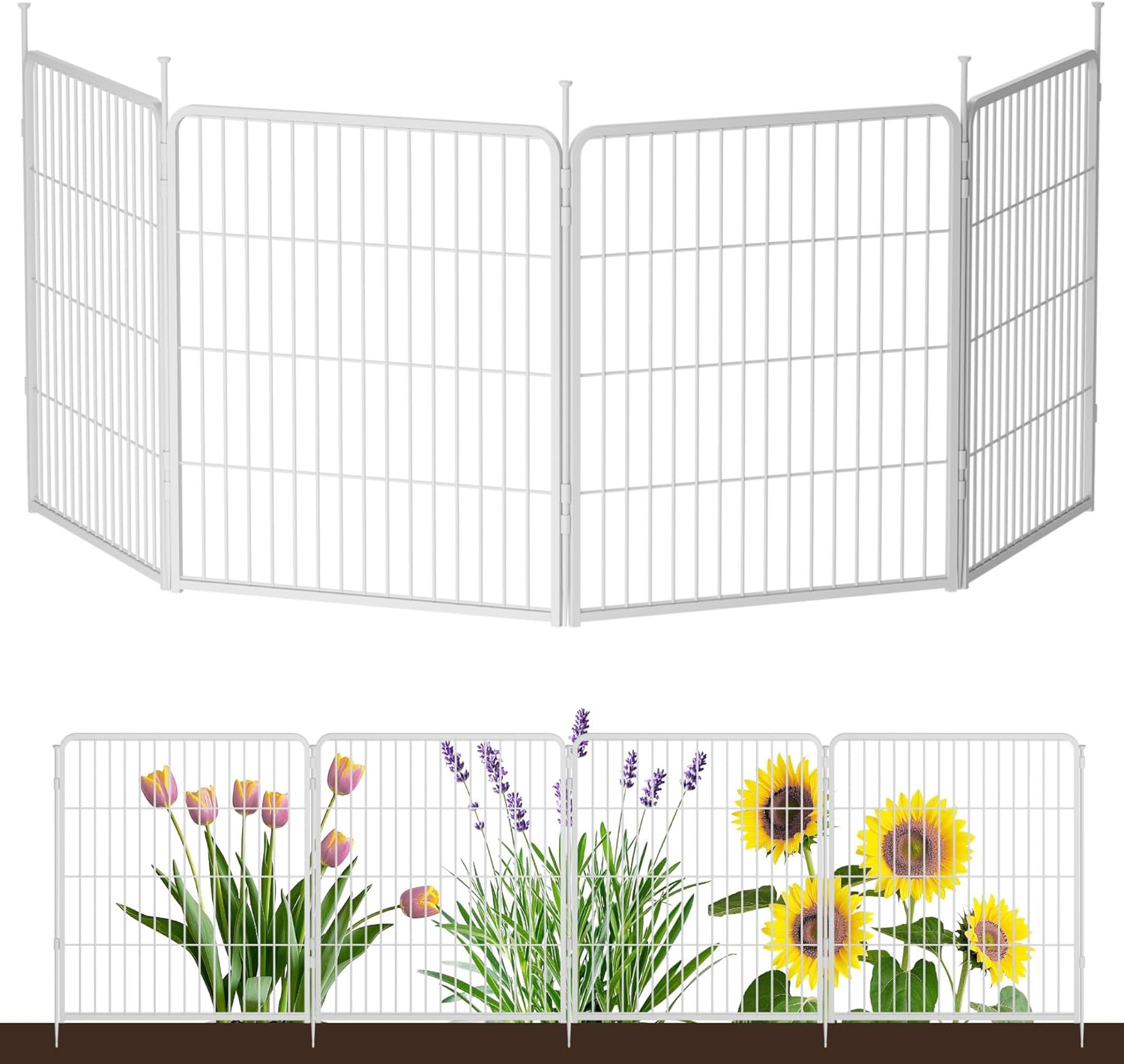 Doorless Garden Fence 32 in(H) x 8.9 ft(L) 4 Panels, Heavy Duty Metal Animal Barrier Fence, No Dig Fence for Dogs, Rabbit Fence for Garden, White