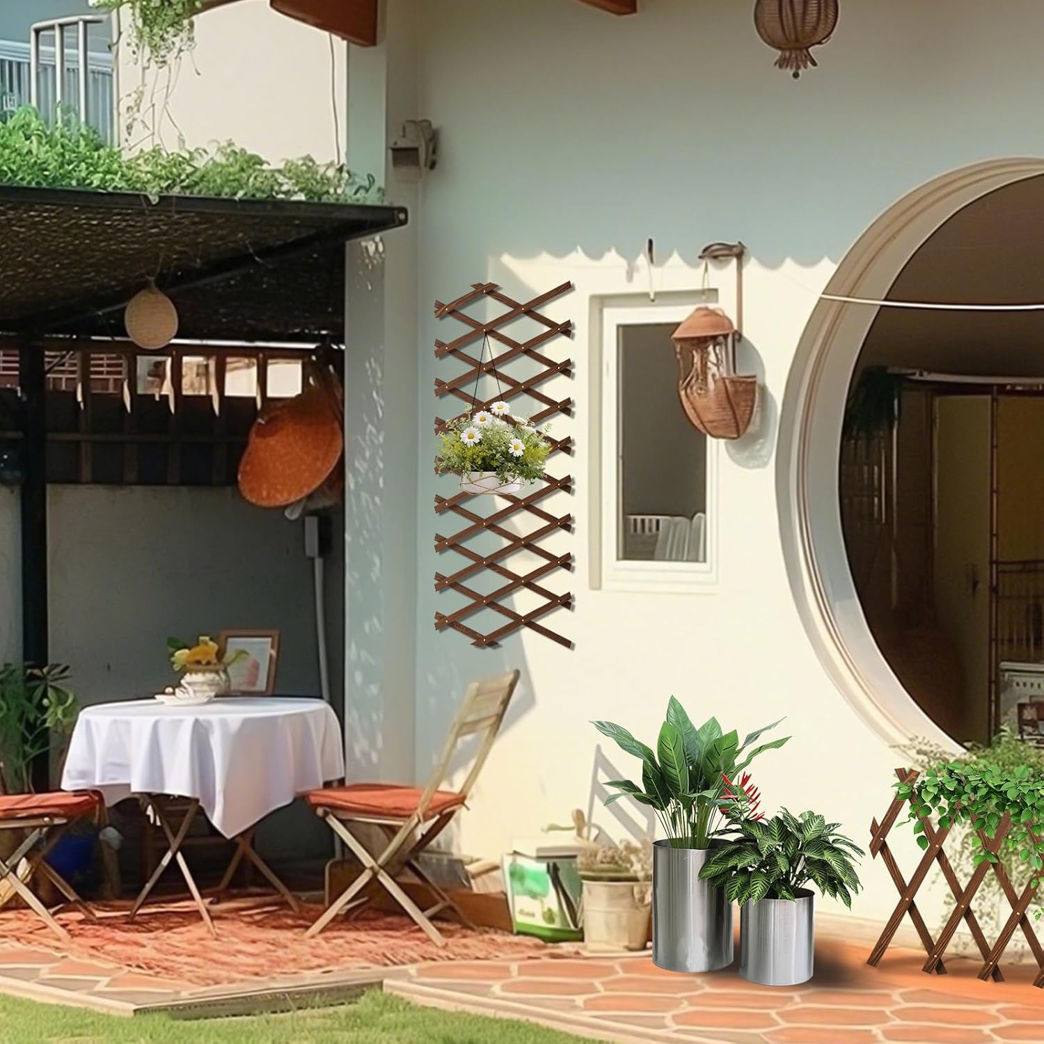 - Durable and Weather-Resistant: The closed dimensions of the wooden lattice are 17.3 inch long and 8.7 inch wide. When fully unfolded, the lattice panel is 60 inch long and 13.4 inch wide. Plant support garden trellis is made of high quality carbonized pine, which is more durable. Designed to stand the test of time, lattice fence will ensure that your plaid stays strong and reliable all season long