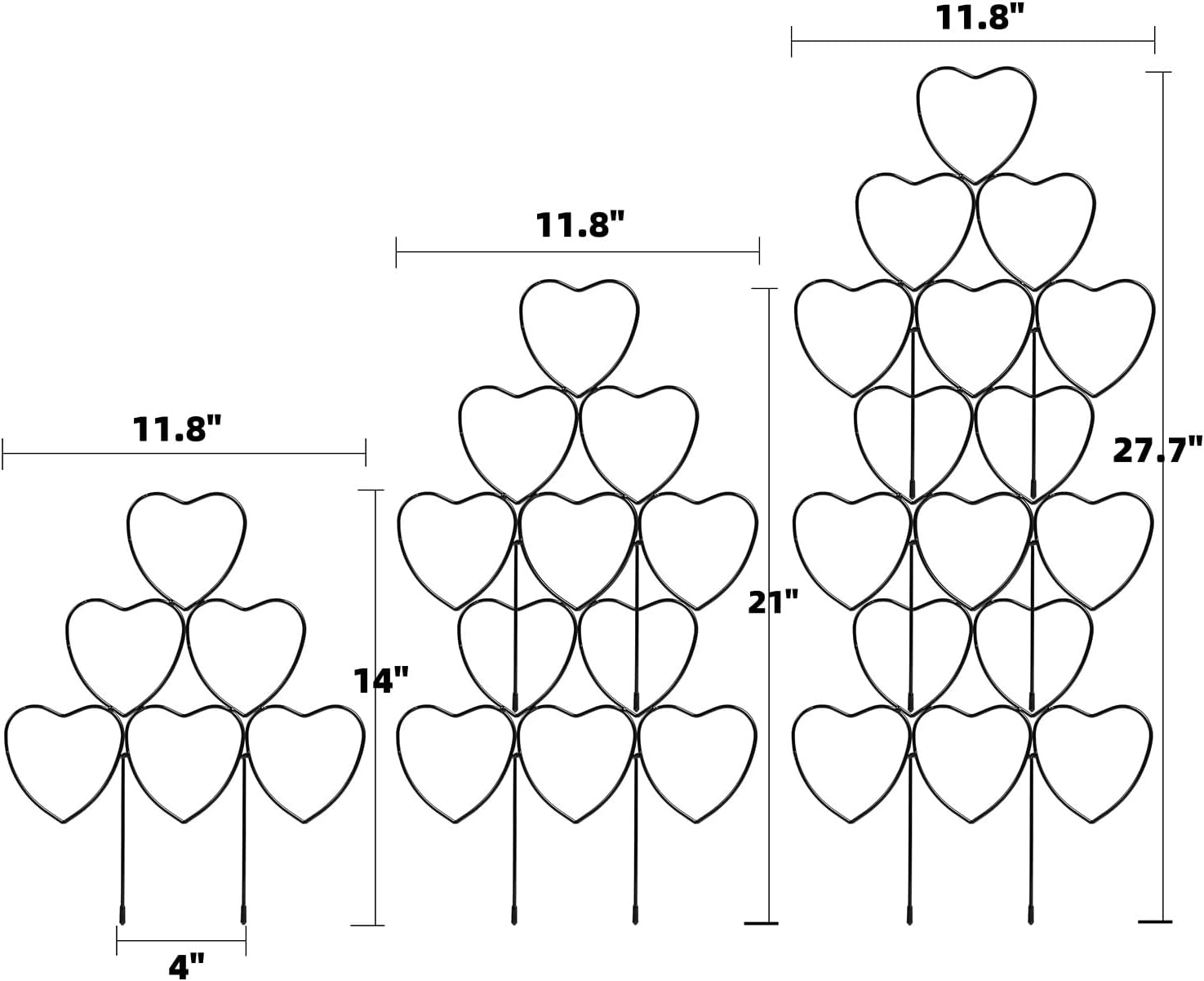 - 3 pack plant trellises, each trellis measures 12"(W) x 14"(H), the proper size for supporting your climbing plants; These trellises are perfect for smaller houseplants, providing just the right amount of support for their growth. They're sturdy enough to keep your plants upright and thriving, without overpowering their delicate stems.