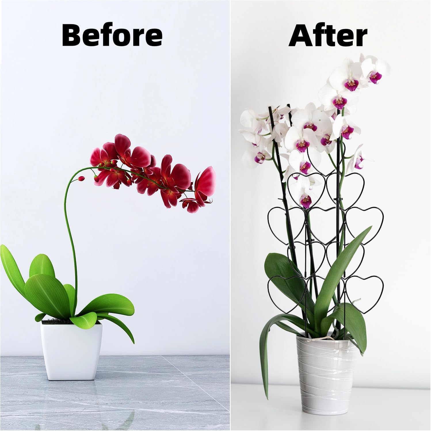 - Made of iron, easy to assemble, sturdy and durable; the indoor plant trellis set holds up well even with heavier growth and helps your plants grow taller and bigger.