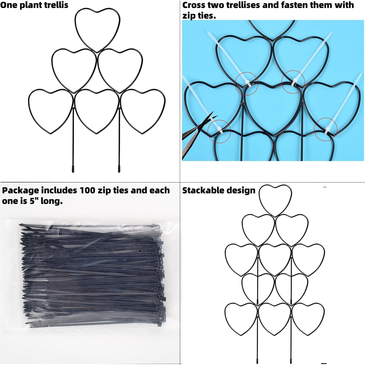- The garden trellises are stackable and the 3 pack trellises provide you flexibility to get creative with your plants, adding a lovely aesthetic to your home.