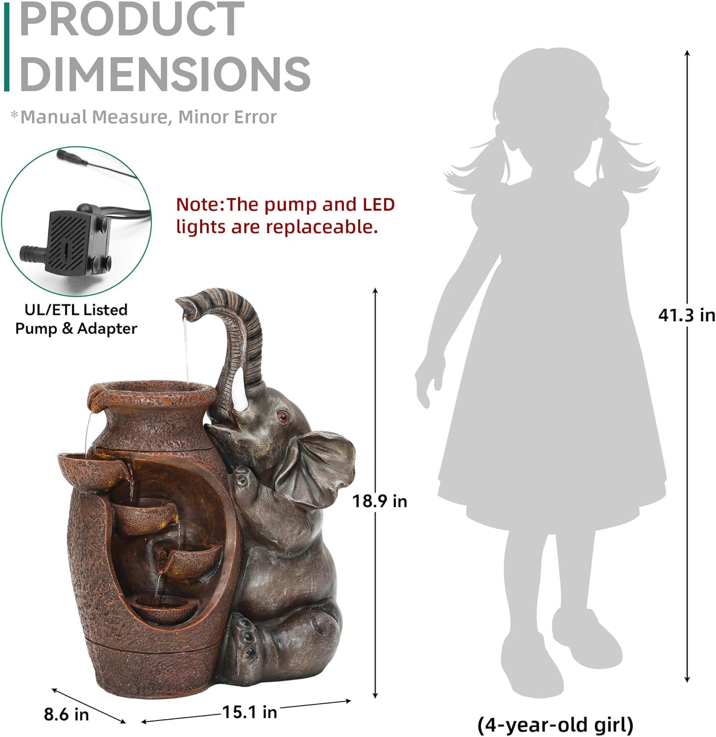 - Replaceable Parts – he pump and LED lights are easily replaceable, ensuring your fountain remains fully functional and easy for long-term enjoyment.