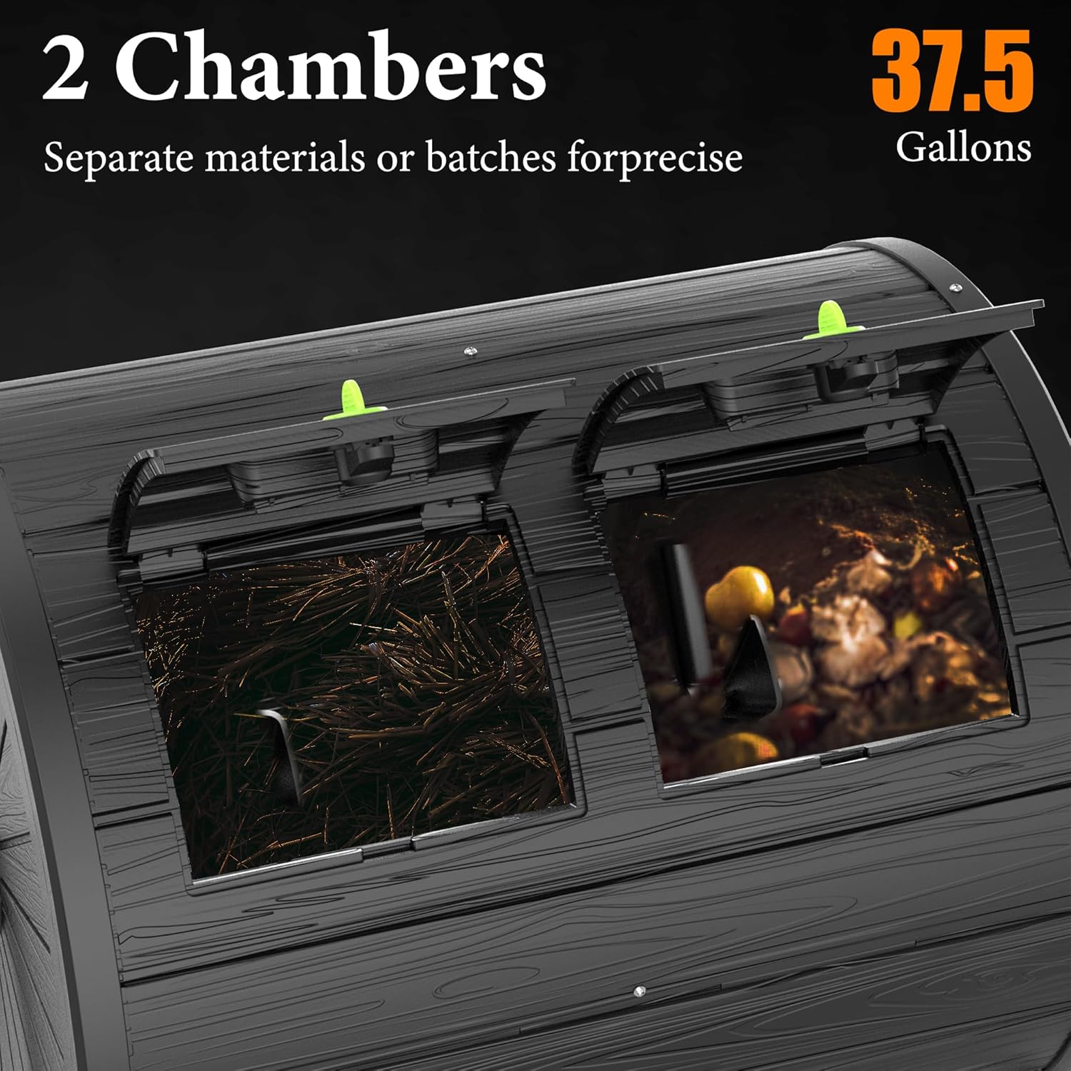 DRATO Compost Bin Outdoor 37.5 Gallon All-Season Dual Chamber Tumbling for Garden, Kitchen, Yard, Outdoor (Black)