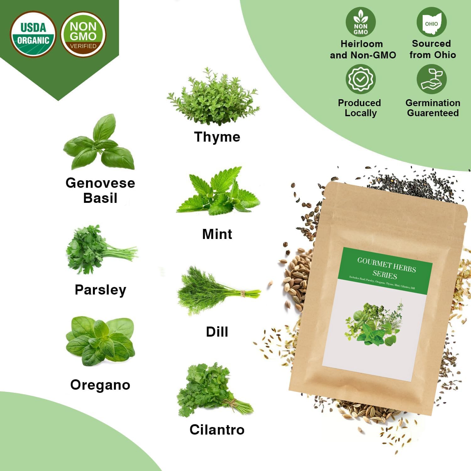Gourmet Herbs Seed Pod Kit for AeroGarden, iDoo, Ahopegarden, MUFGA Hydroponics Garden with Basil, Parsley, Thyme, Mint, Cilantro, Dill, Oregano - Compatible with All Hydroponics (7-Pod)