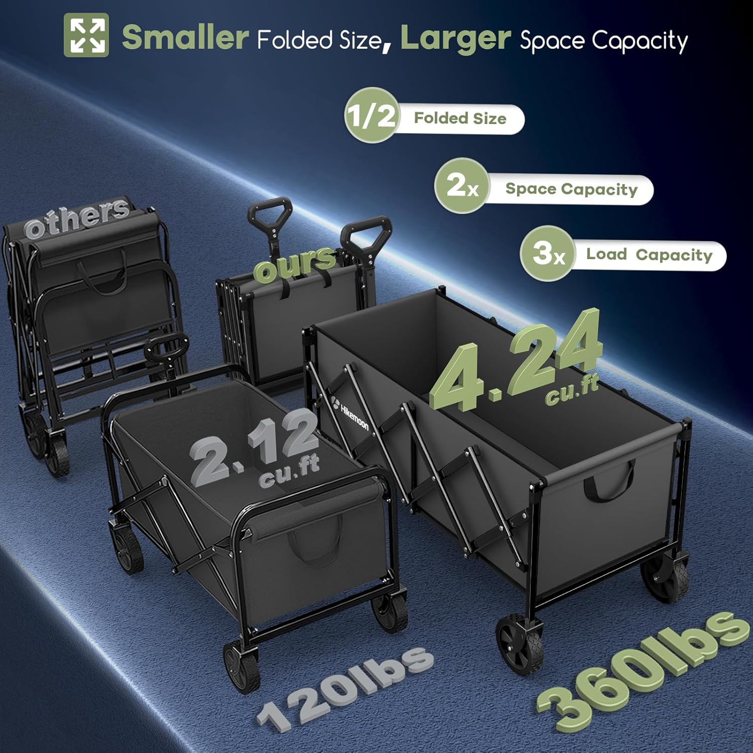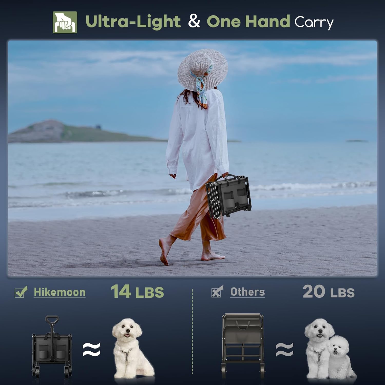 - 【𝟑𝟒" 𝐄𝐱𝐭𝐫𝐚 𝐋𝐨𝐧𝐠 𝐋𝐢𝐠𝐡𝐭𝐰𝐞𝐢𝐠𝐡𝐭 𝐖𝐚𝐠𝐨𝐧 𝐰𝐢𝐭𝐡 𝟏𝟐𝟎𝐋 𝐂𝐚𝐩𝐚𝐜𝐢𝐭𝐲】: Featuring a patented design, this wagon is 50% longer than standard wagons. Its spacious interior easily accommodates long items like folded tents. Despite its large capacity, it weighs only 14 lbs, making it 40% lighter than other wagons! You can carry this portable wagon effortlessly.