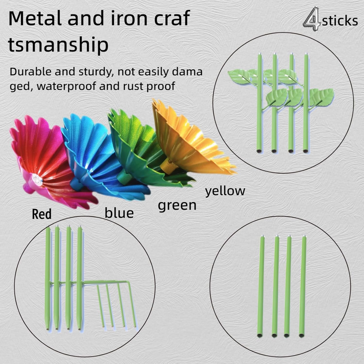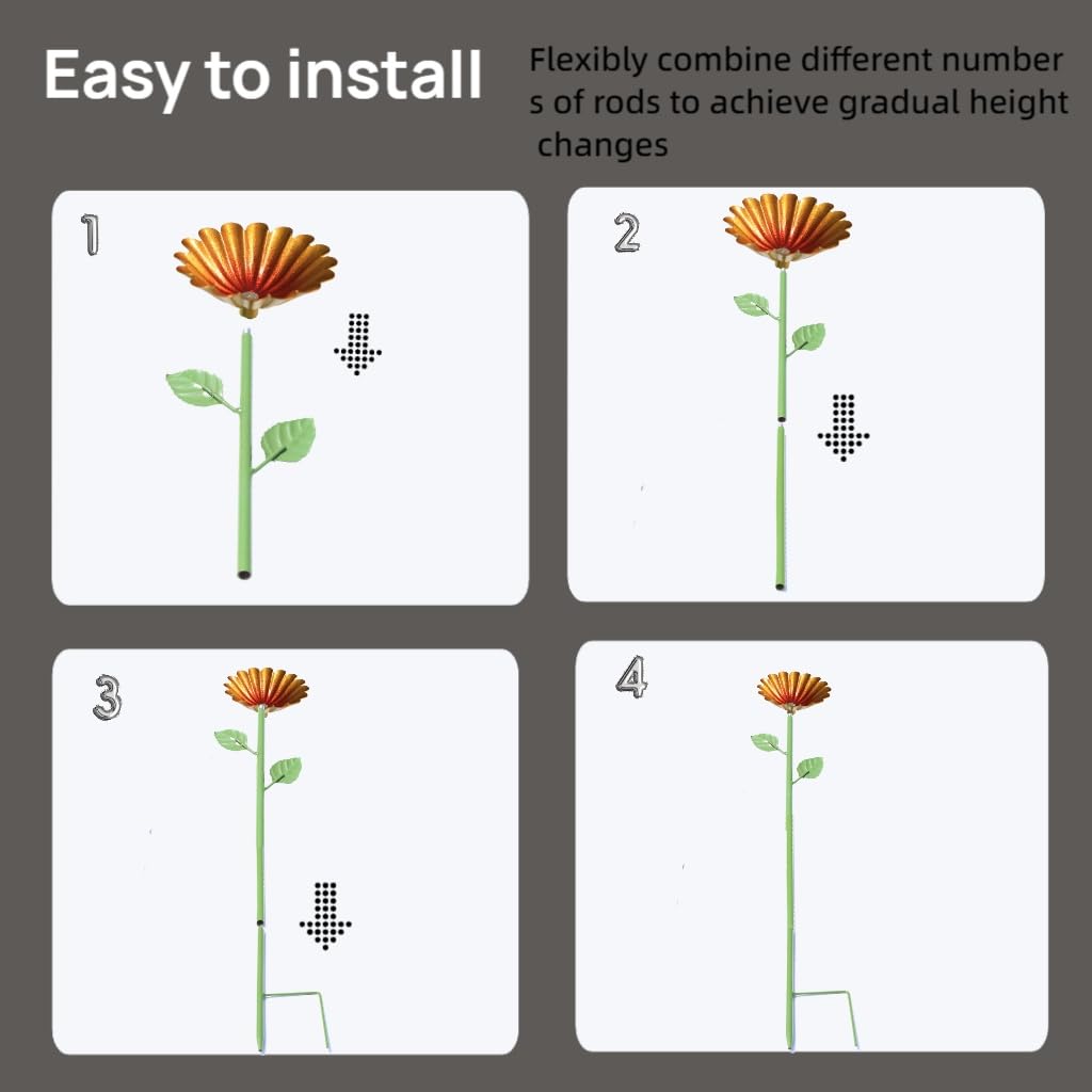 - Tool-Free, Adjustable Installation – Assemble the flower and rod in seconds—no tools needed! Insert the base into soil for stability. Adjust the rod's height to create a tiered garden display, perfect for yards of any size