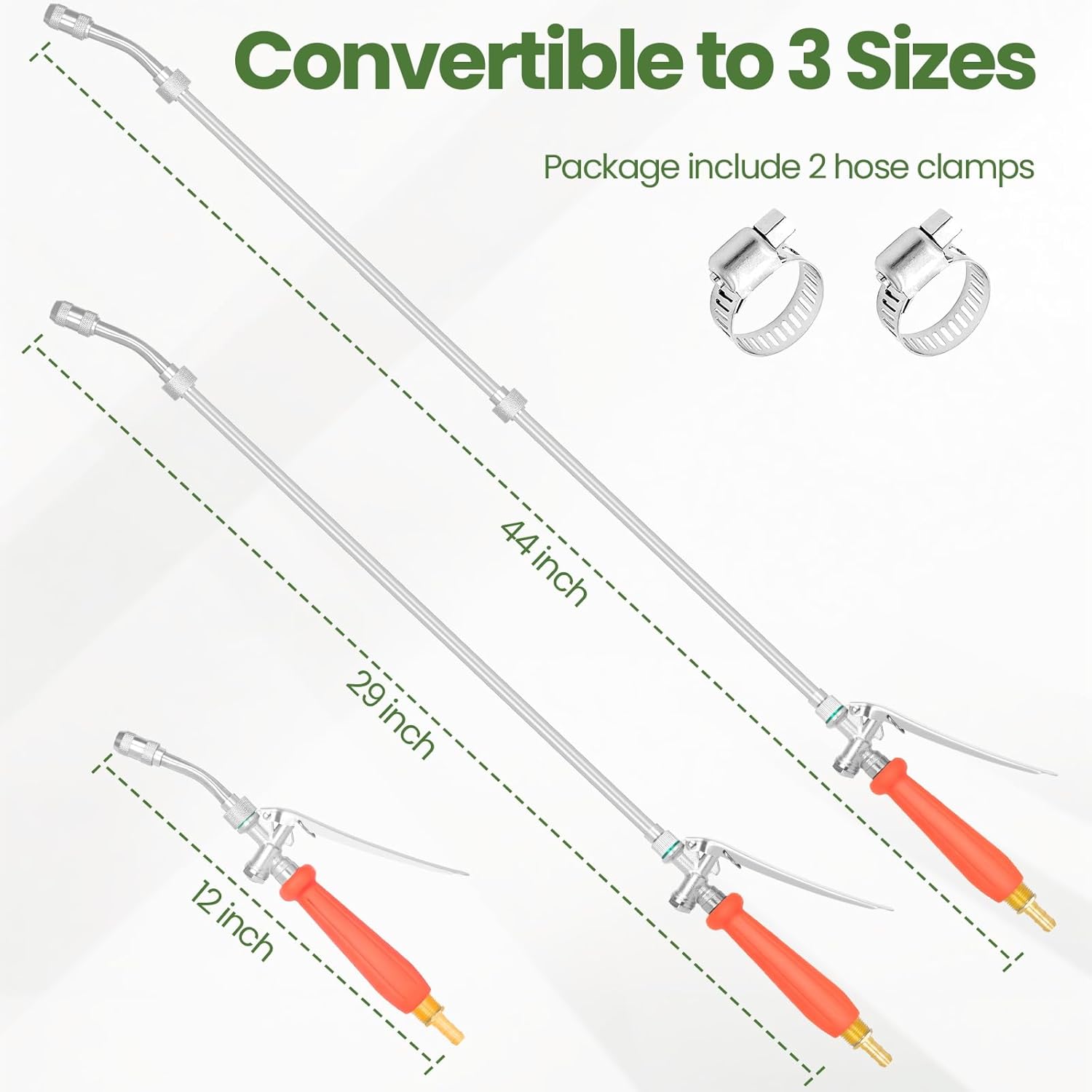 - 【High-quality after-sales service】If you're not satisfied with this item at anytime within 1 year of purchase, we'll provide a refund or replacement. Package included: 1 * 44”sprayer wand contains 2pcs 16” replacement extension wands,1 * 1/2" Quick Connectors,2 * Brass barbs for 3/8" hose and 1/4" hose, 2 * Hose Clamps,2* Gaskets, 2 * Teflon Tape.