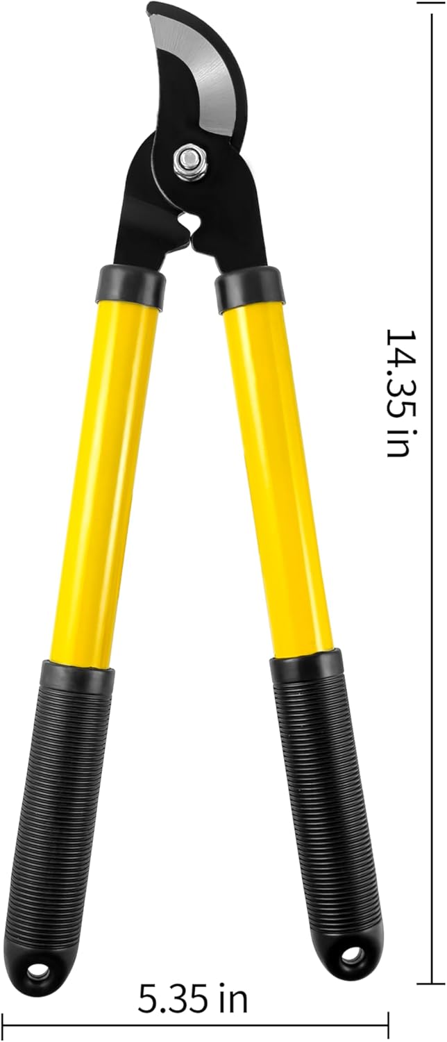 - 🌷POWERFUL 14-INCH LOPPER – Effortless Cutting & Precision – Engineered for clean, smooth cuts, our razor-sharp, hardened steel lopper blades slice through thick branches and tough stems with ease. The long ergonomic handles provide extra leverage to reduce effort and hand strain, making pruning effortless.