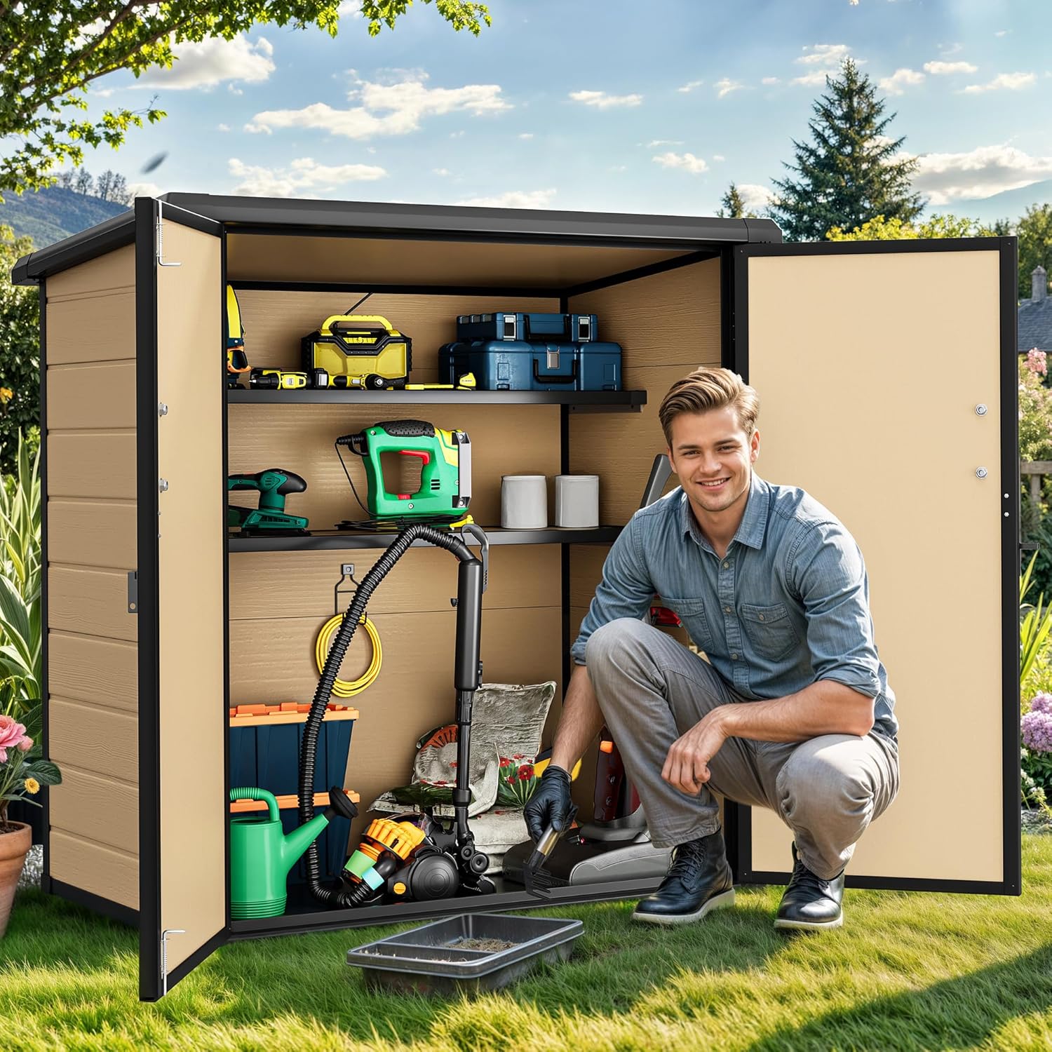 - Easy and Safe Access: This garden shed outdoor storage features double doors (23.6''L x 53.5''H each) for easy entry, even for large items; The lockable latch (lock not included) adds extra security for backyard, garage, or patio storage