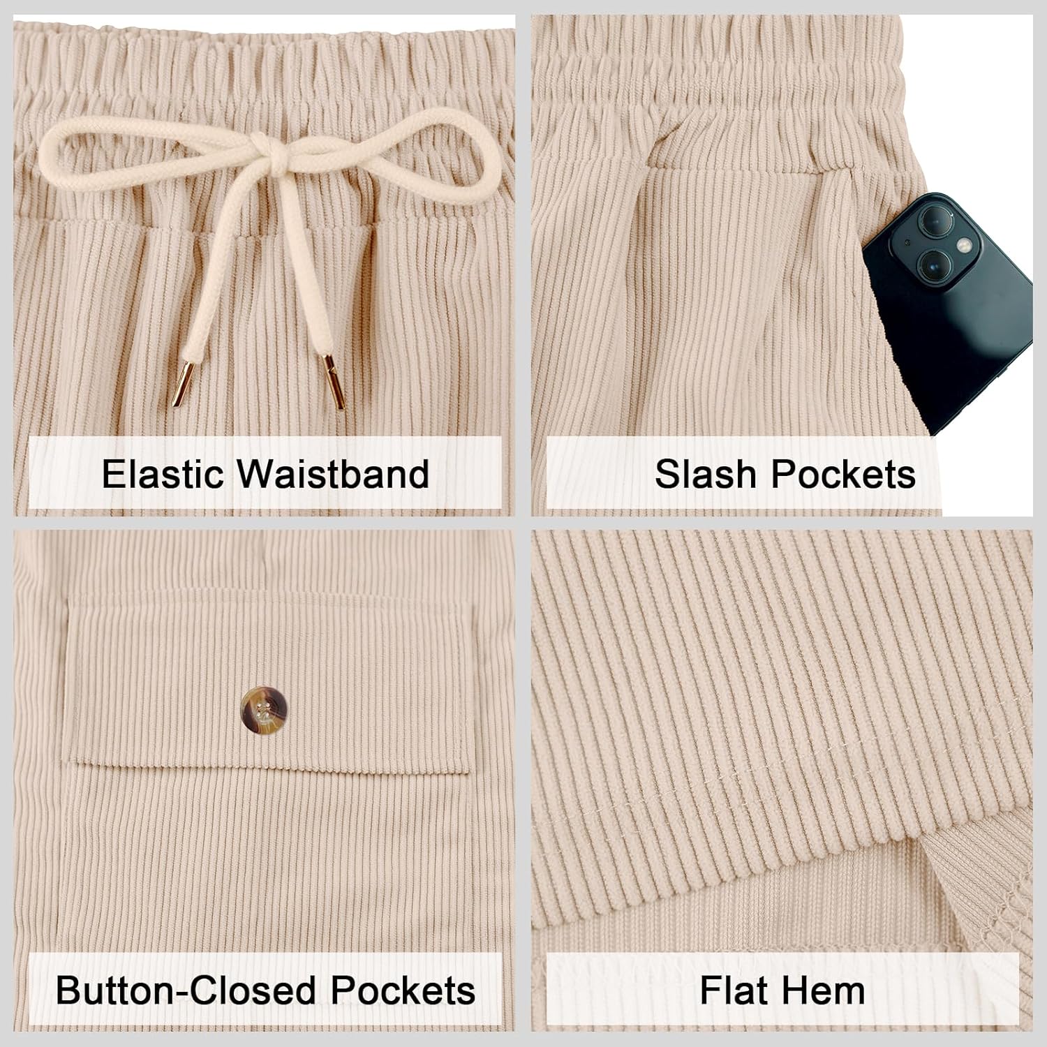 Mens Cargo Shorts Casual Drawstring Elastic Waist Corduroy Summer Beach Shorts with Pockets