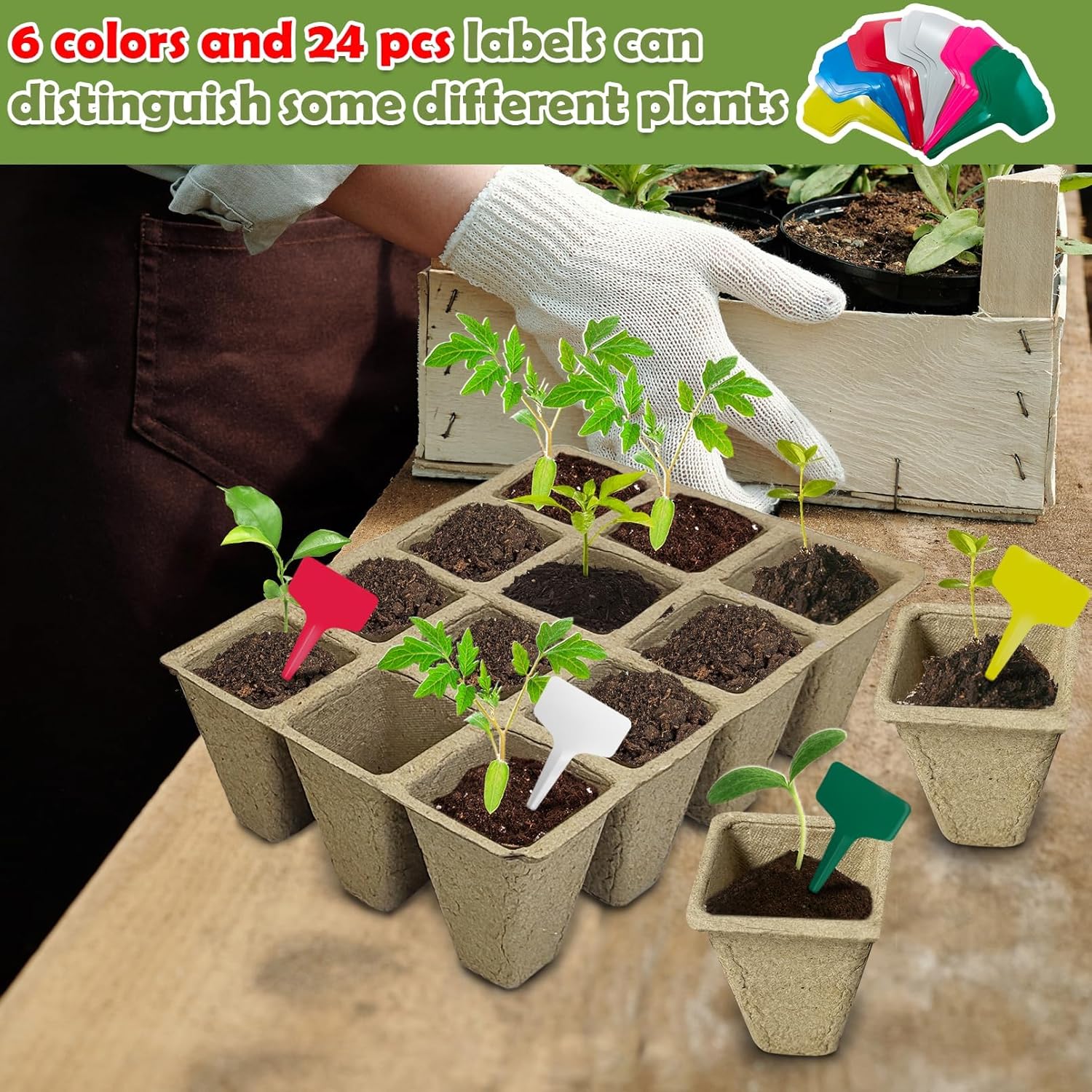 - Seed Starter Kit: Each pack of the planting and germination set includes 24 plant germination trays, 288 cells peat pots, 24 colorful high-quality plant labels, and 2 mini simple transplanting tools. We hope these can help beginner plant planting enthusiasts embark on a pleasant planting journey