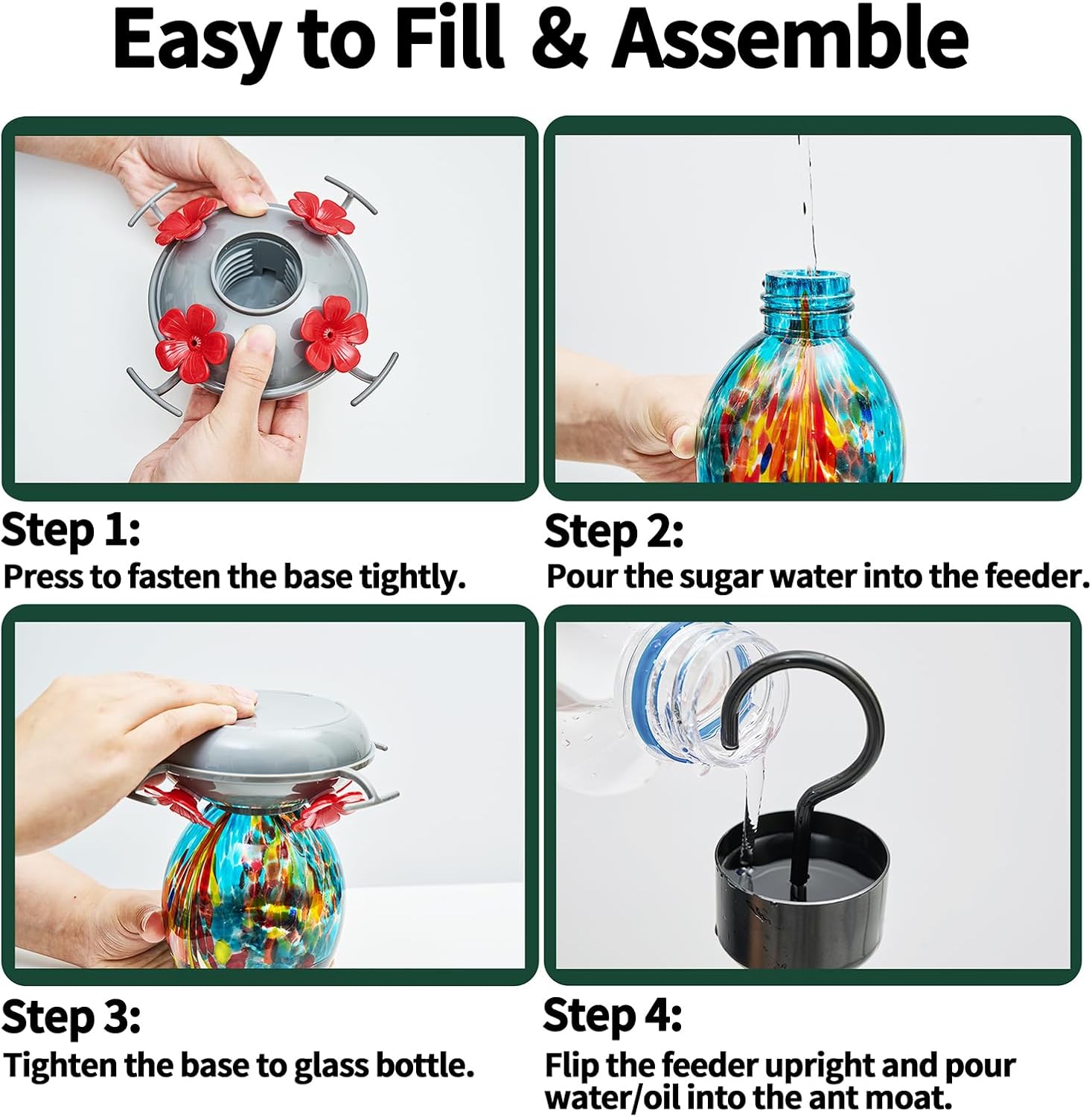 - **Durable Construction** High-quality handbown glass hummingbird feeders can withstand wind and sun exposure, ensuring stability and longevity.