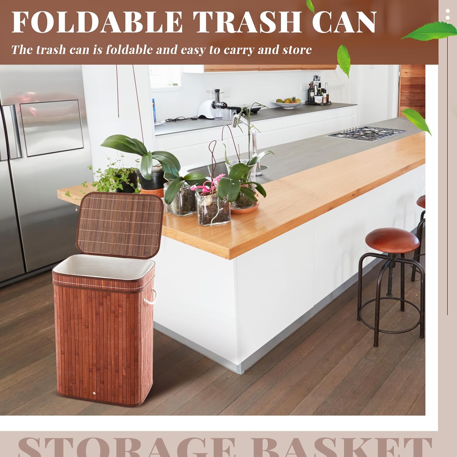 - Package Include: there are 2 pack 80 liter / 21 gallon bamboo trash bins, you can place one in different rooms or one can be used as a trash can and the other as a laundry basket