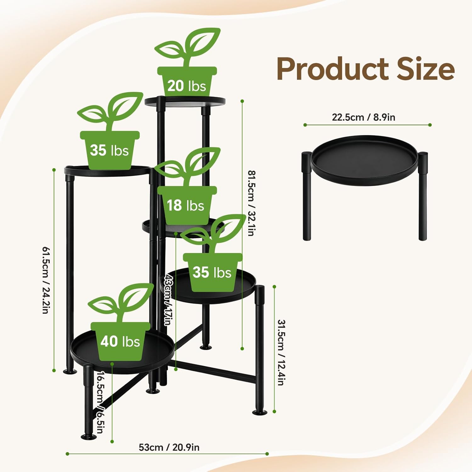 - Adjustable Tiered Display: The tiered plant stand features 5 staggered trays that won't block each other, allowing every plant to receive enough sunlight. Ideal for balconies, bedrooms, living rooms, and dining areas