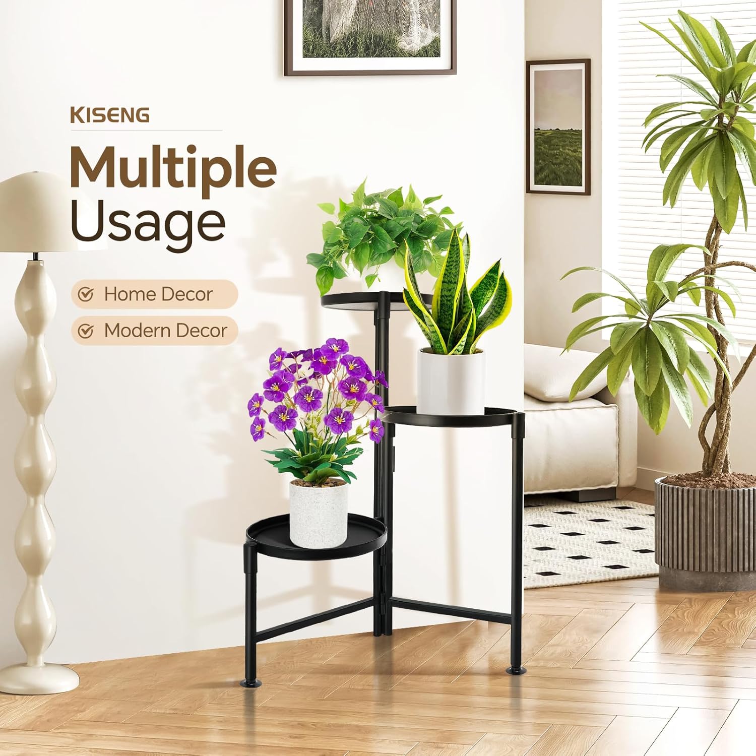 - Easy Tool-Free Assembly: No screws needed! This tall plant stand can be assembled in minutes. The 3 removable trays are easy to install, and the anti-slip foot pads enhance stability while protecting your floors