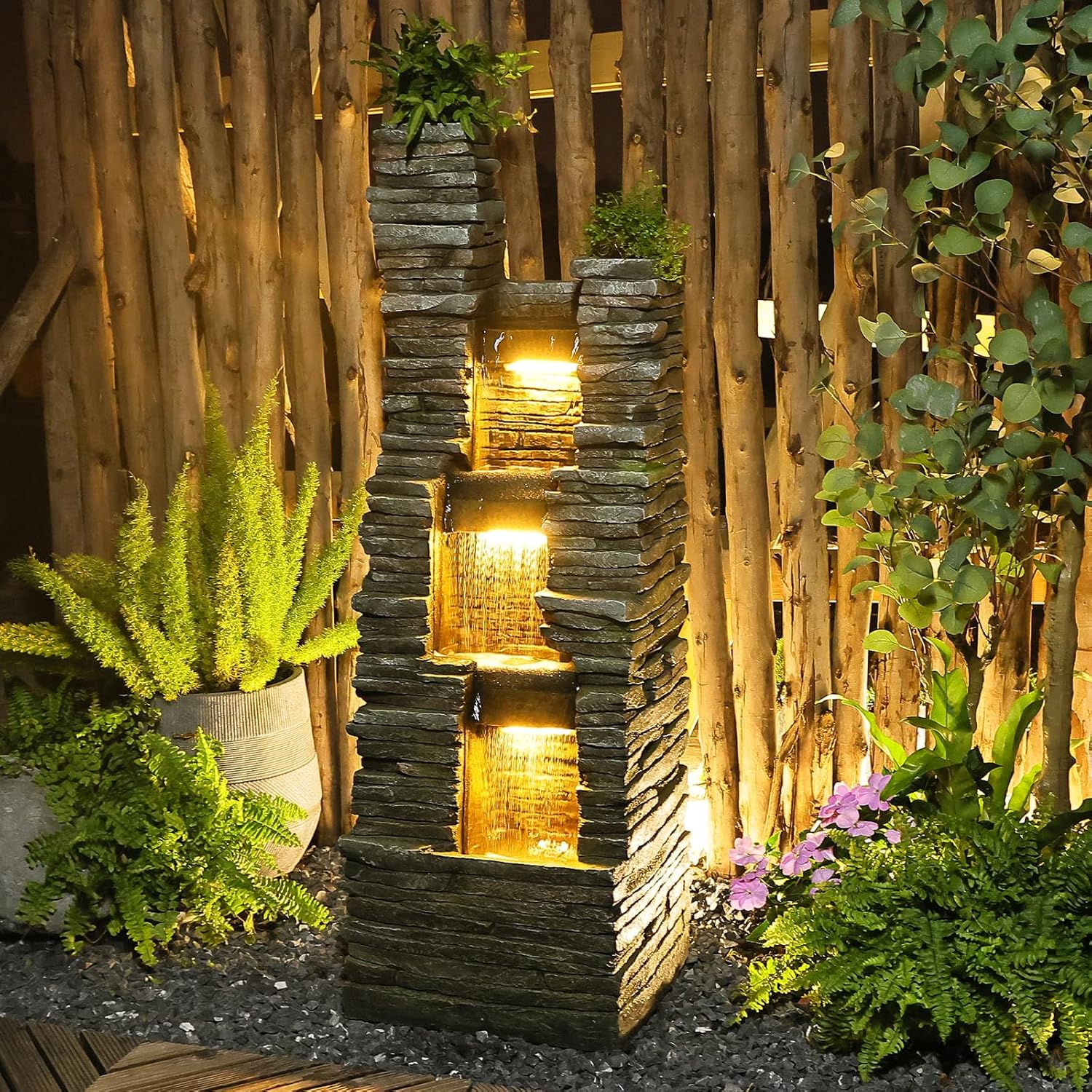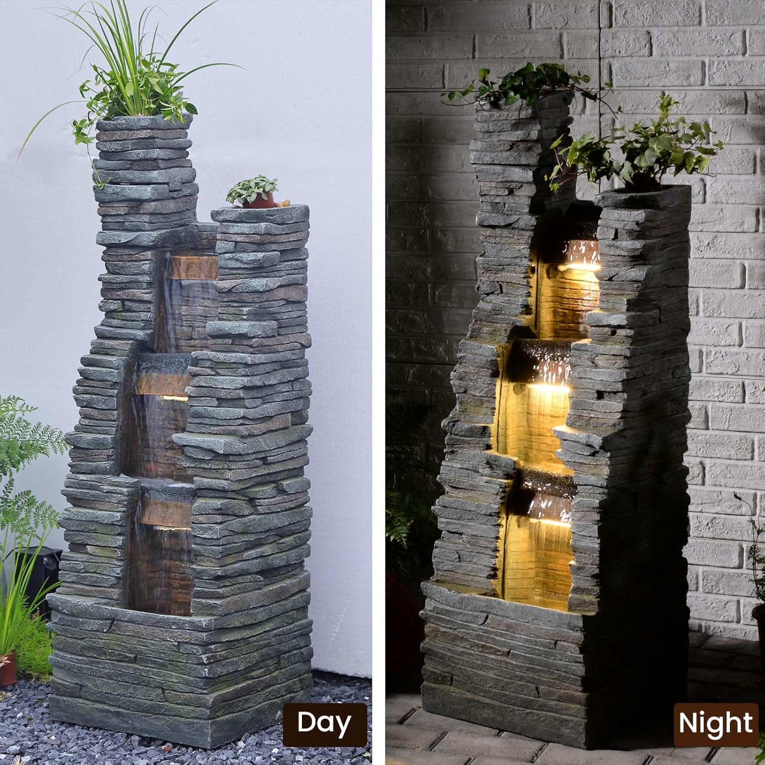 47" H Garden Water Fountain Outdoor with LED Lights & Pump, 3-Tier Cascading Outdoor Fountain for Garden,Patio,Porch,Backyard,Home Art Decor (Gray)